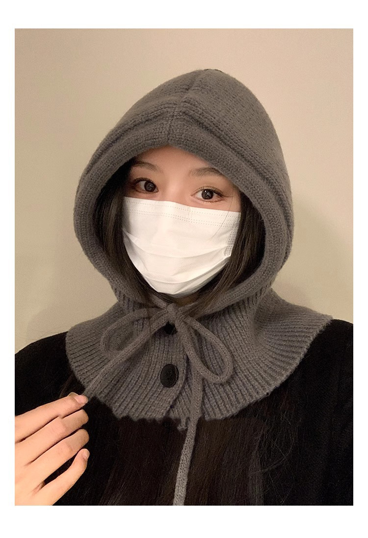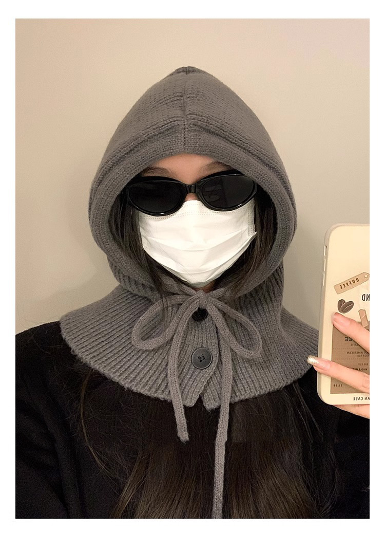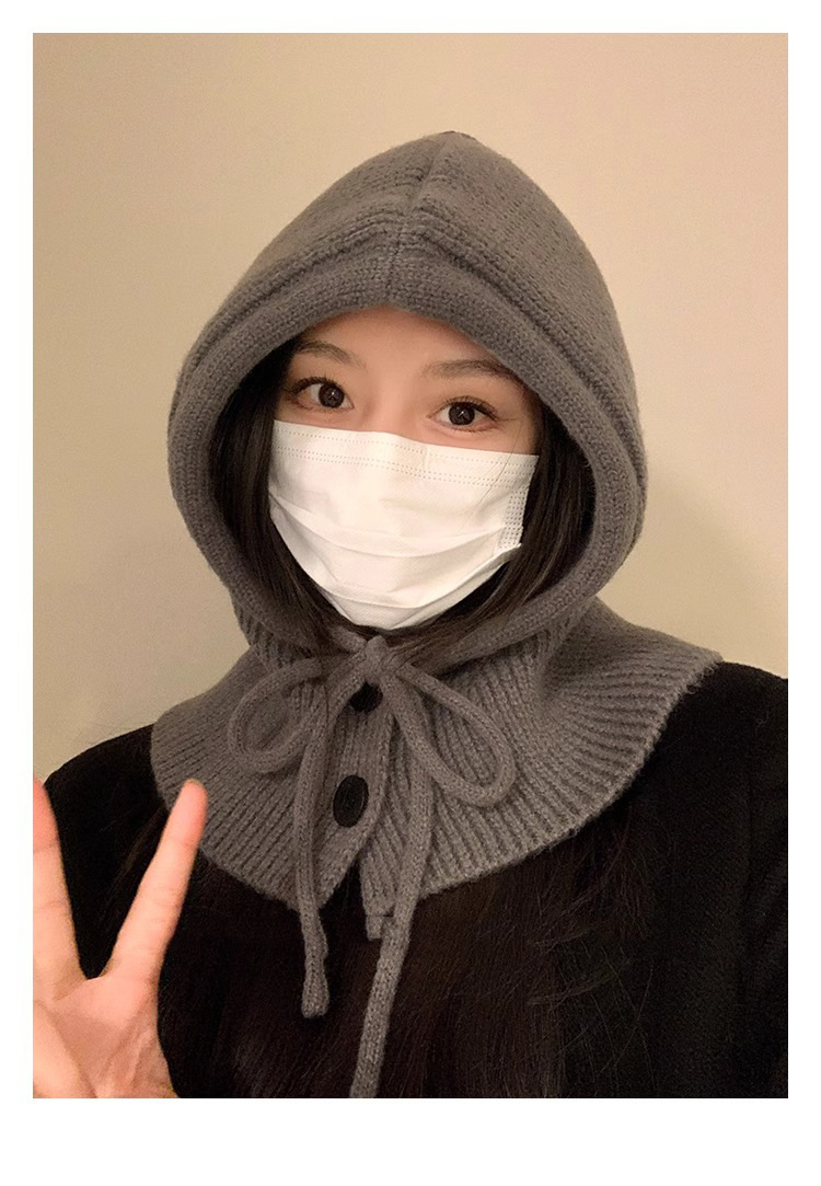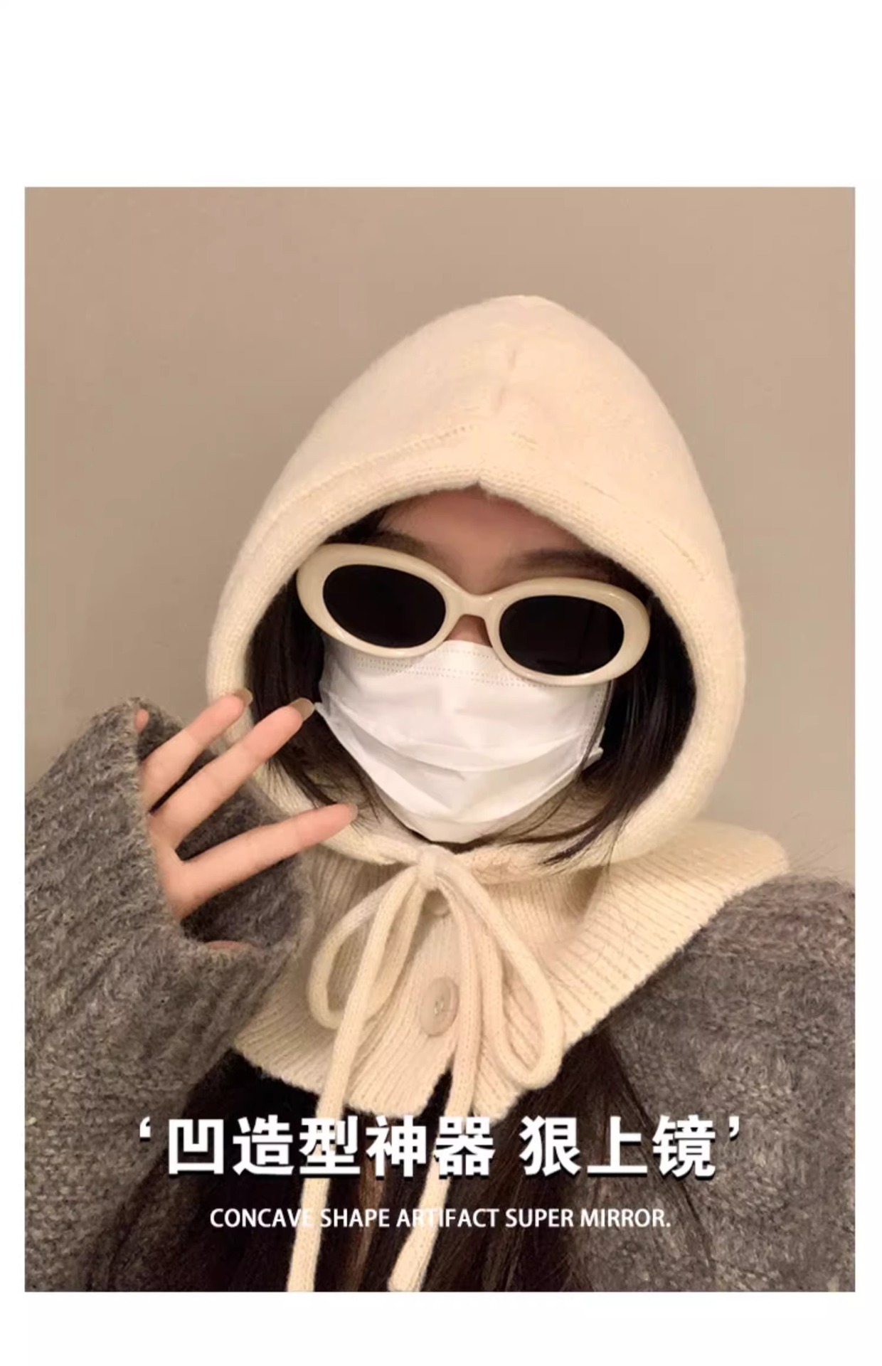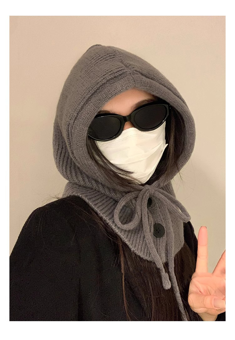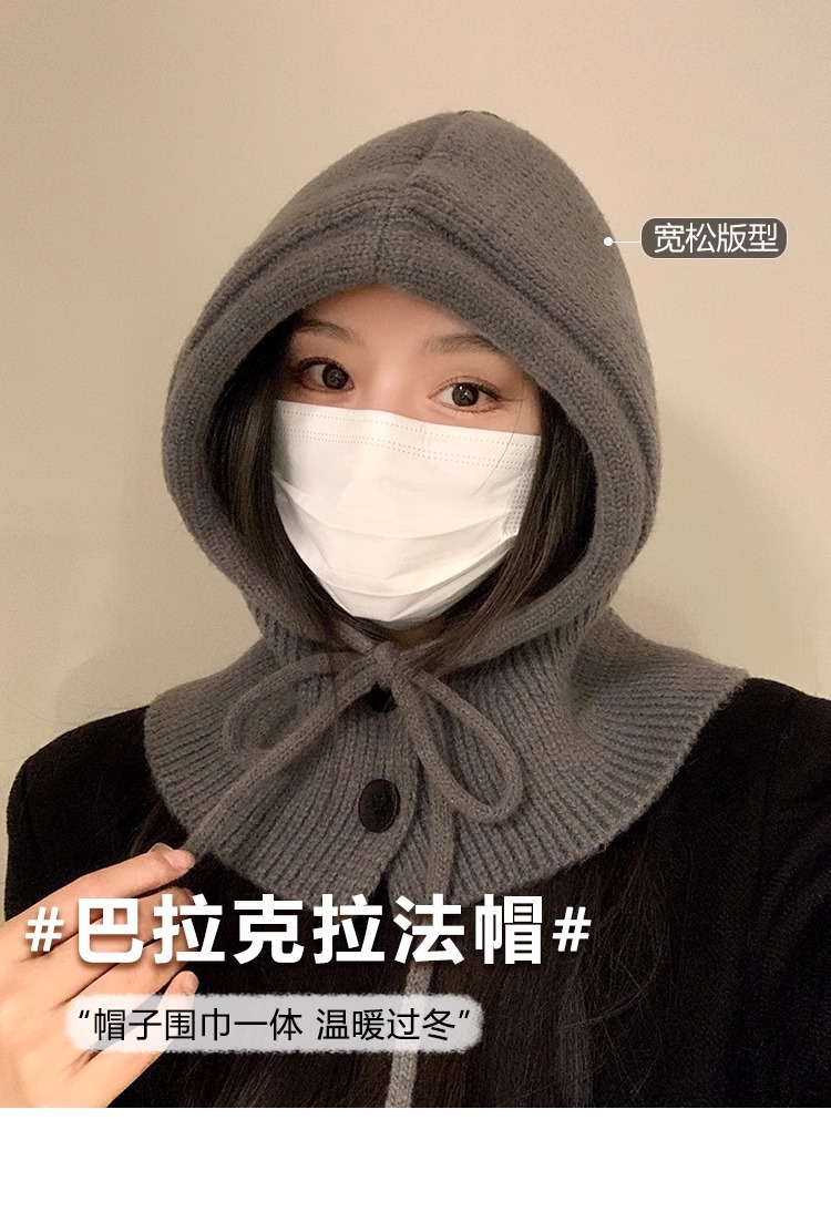 Balaclava Hat Women's Autumn and Winter Warm Knitted Hat Scarf One-piece Hooded Scarf Ear Protecting Wool Hat for Men