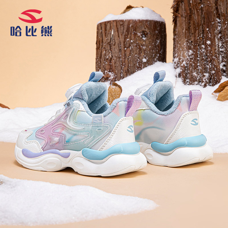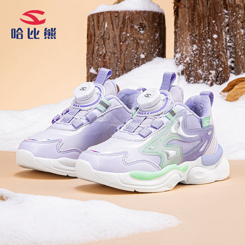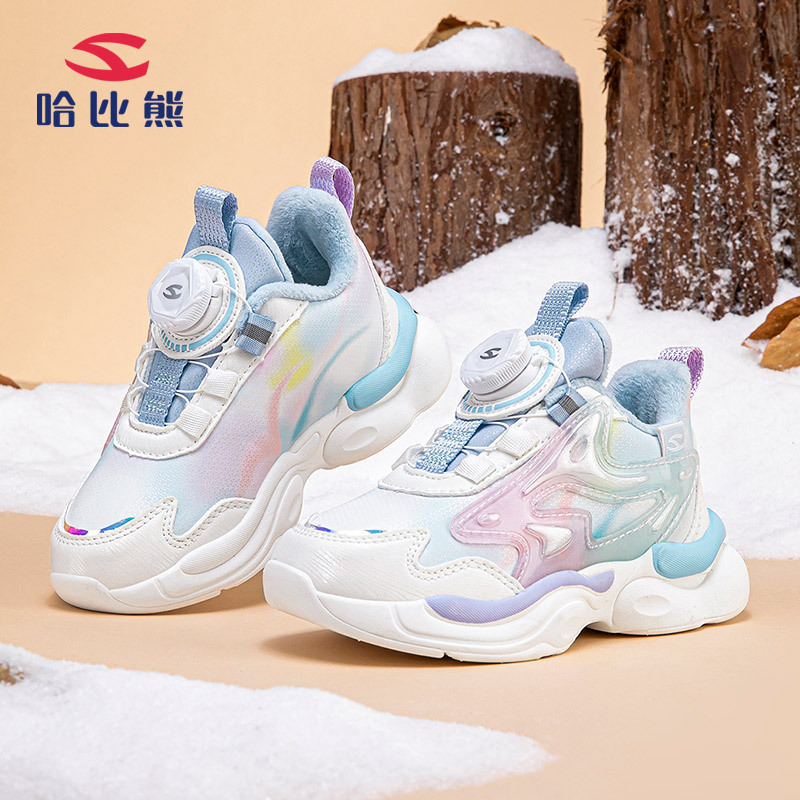 Habixiong two cotton sneaker winter girls rotating buckle fleece-lined casual shoes girls warm running shoes a generation of hair
