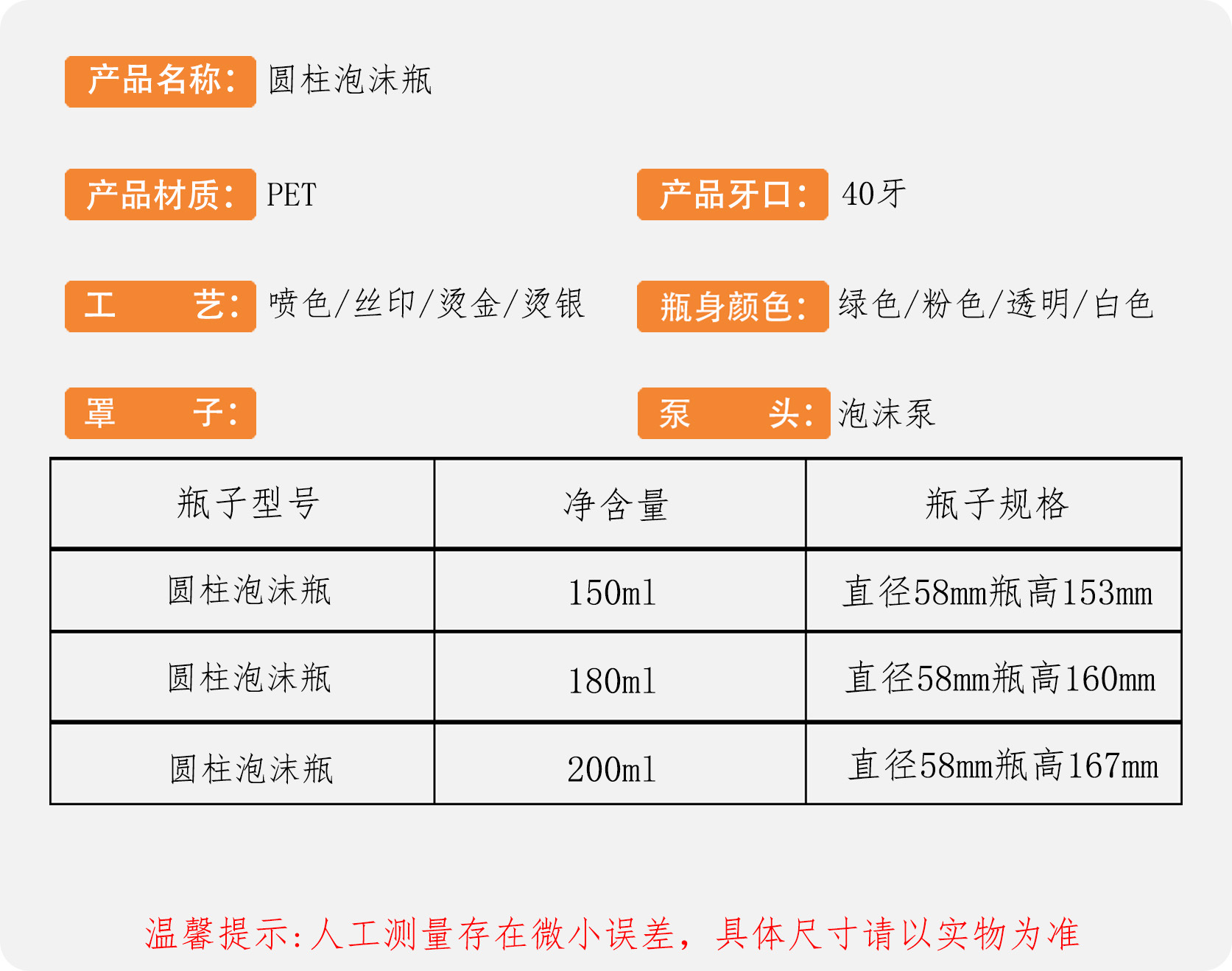 180ml; pink; pet