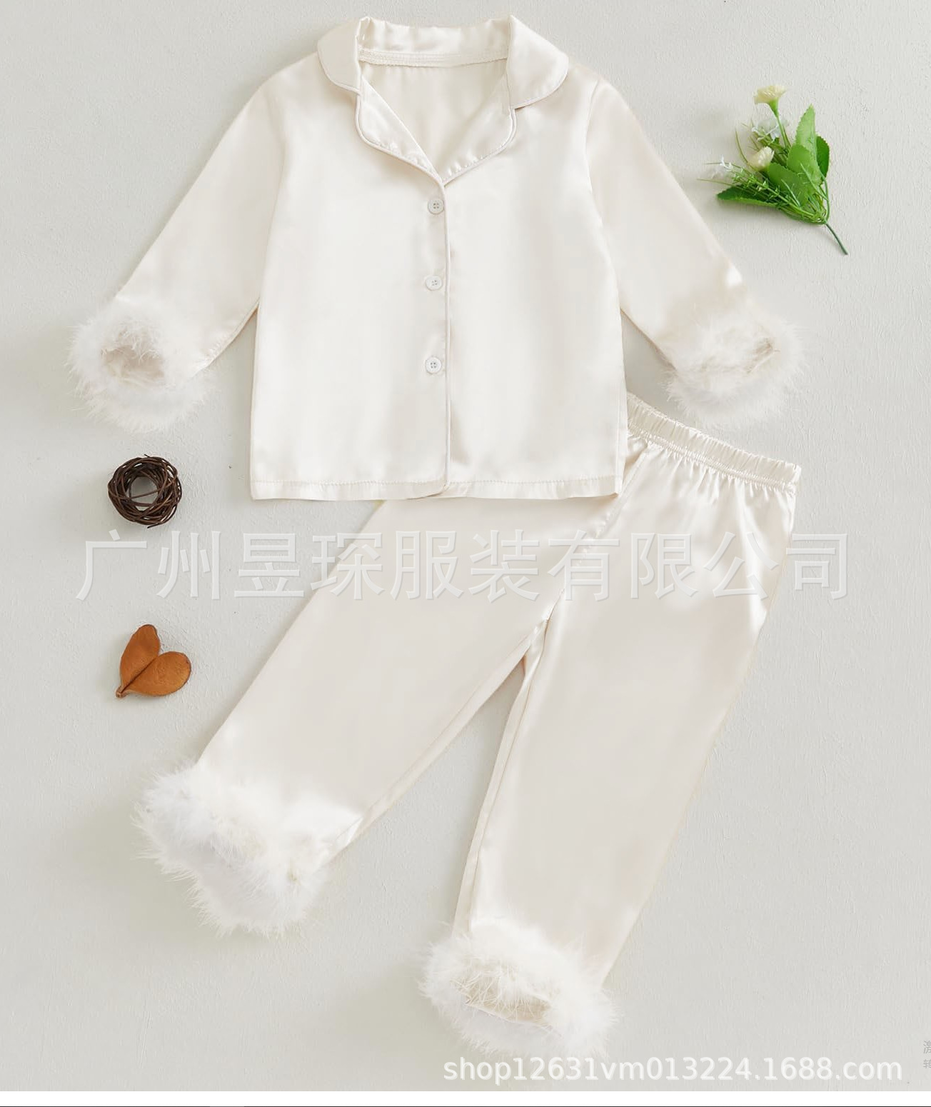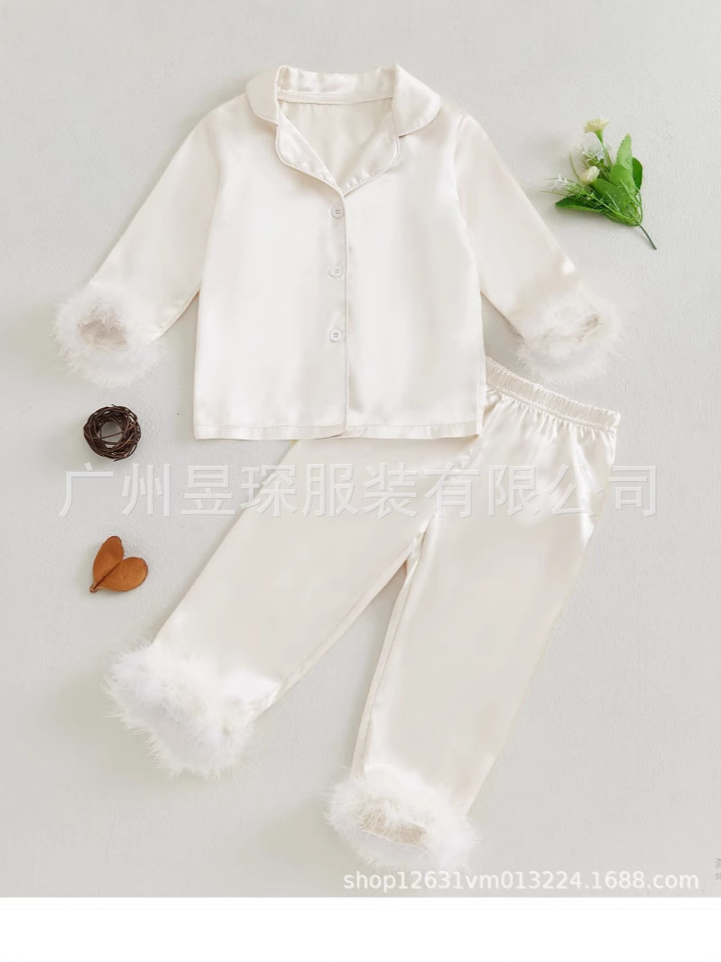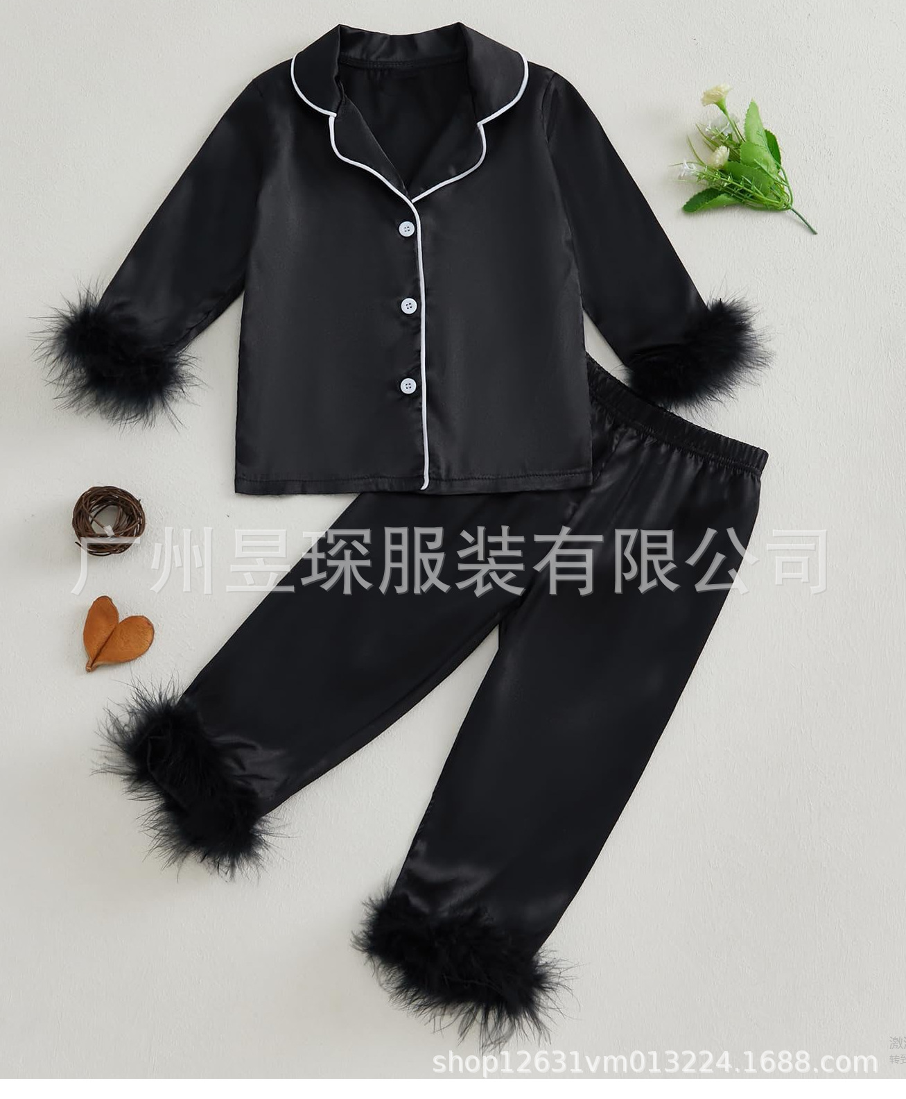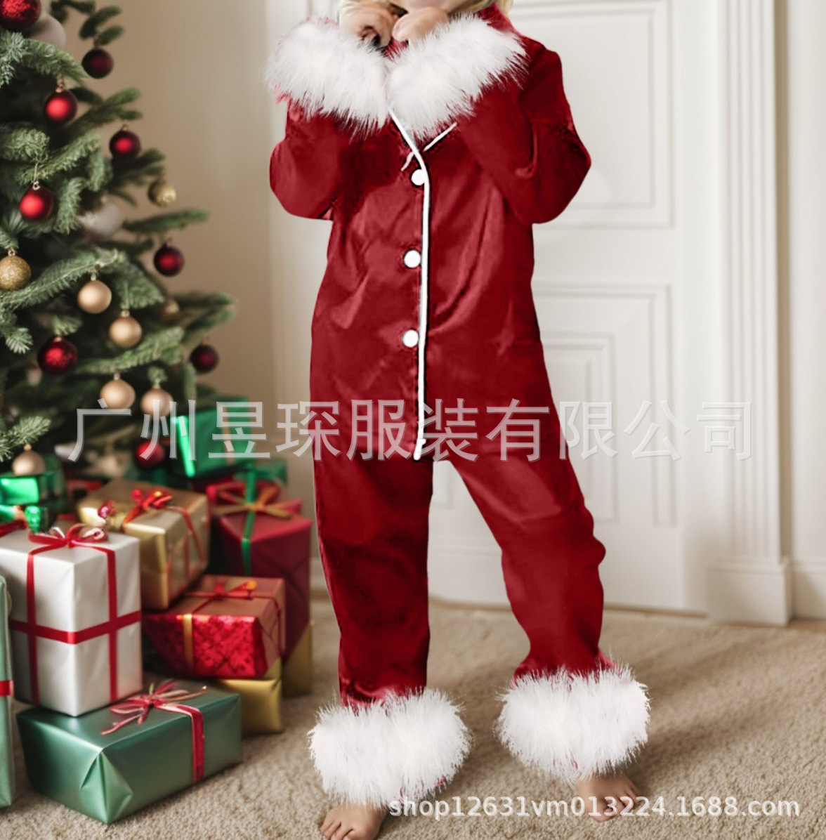 Amazon ebay Foreign Trade Autumn Clothes Children's Home Clothes Children's Christmas Long Sleeve Cardigan Lapel Pajamas suit