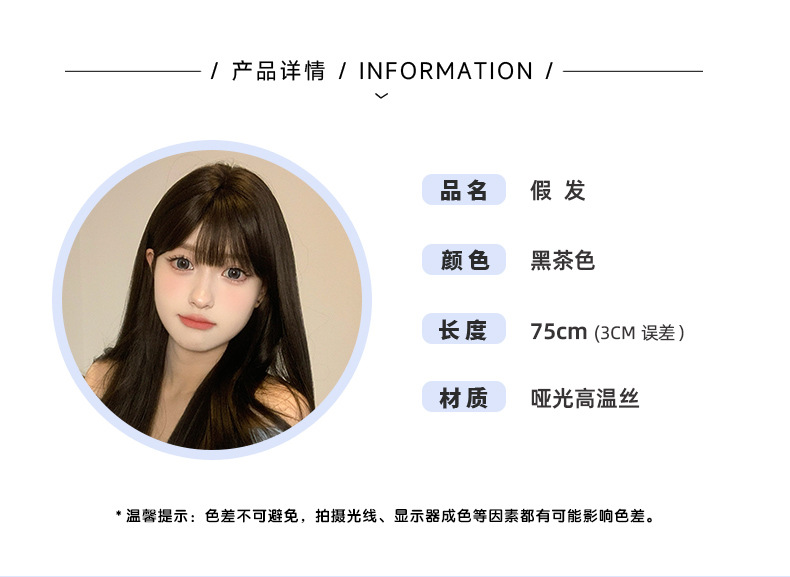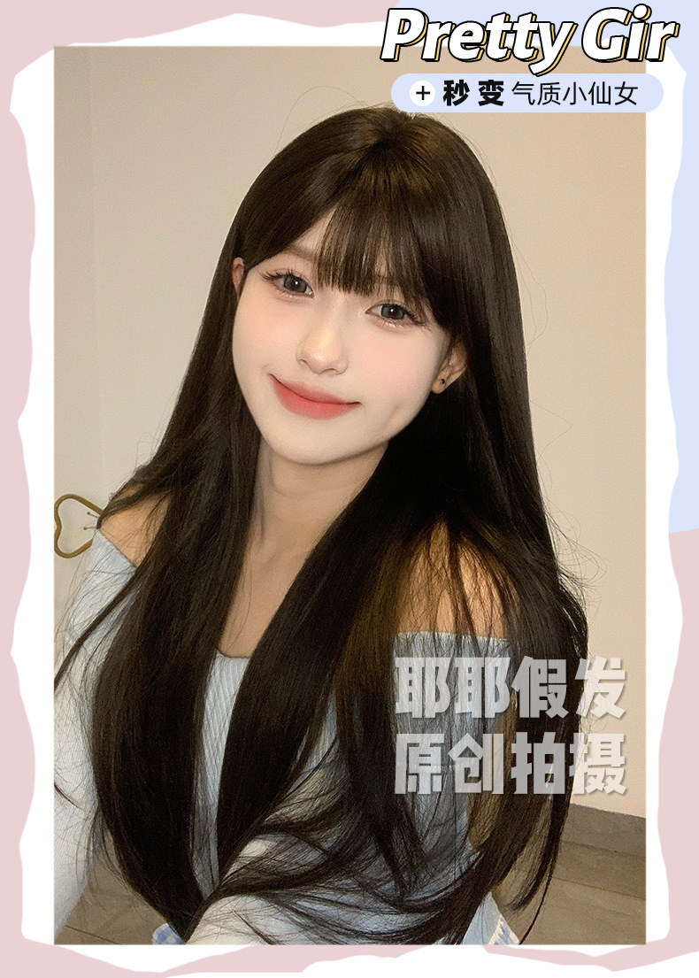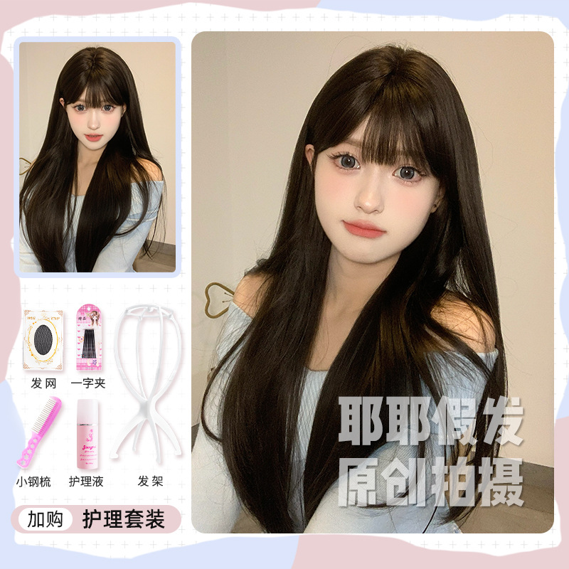 Yeye Wig New Style Women's Daily Cyber Celebrity Long Straight Hair Lolita Natural Realistic Fake Hair JK Full Head Cover