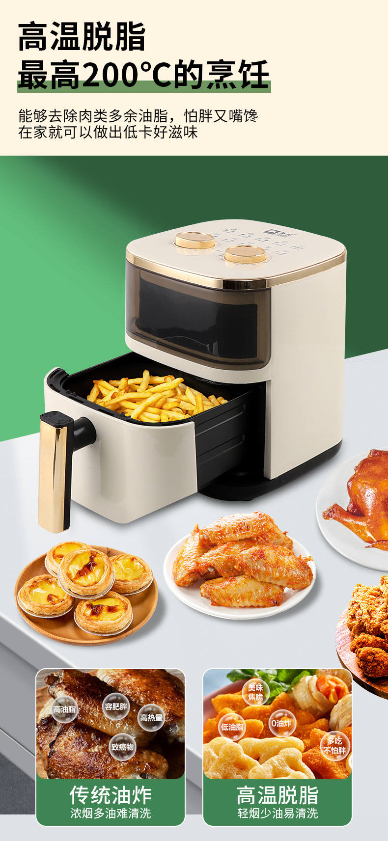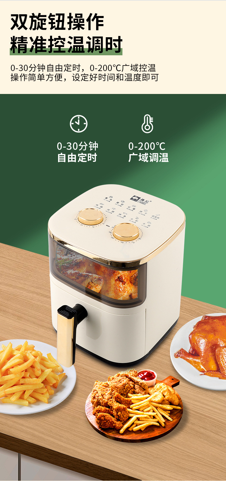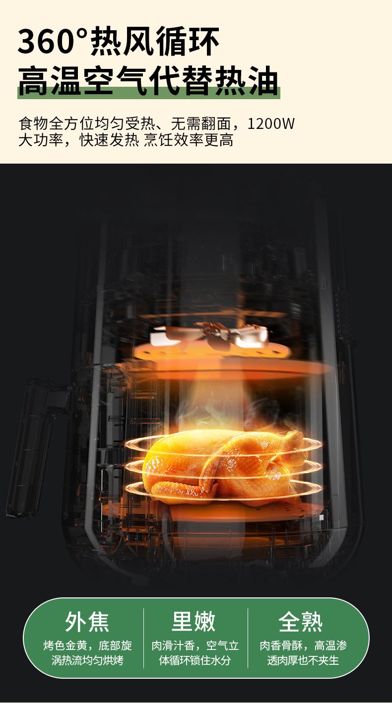 [luxury visible model/beige] upgraded large capacity + menu + 900w high firepower + 4d three-dimensional hot air baking + oil-free and non-stick