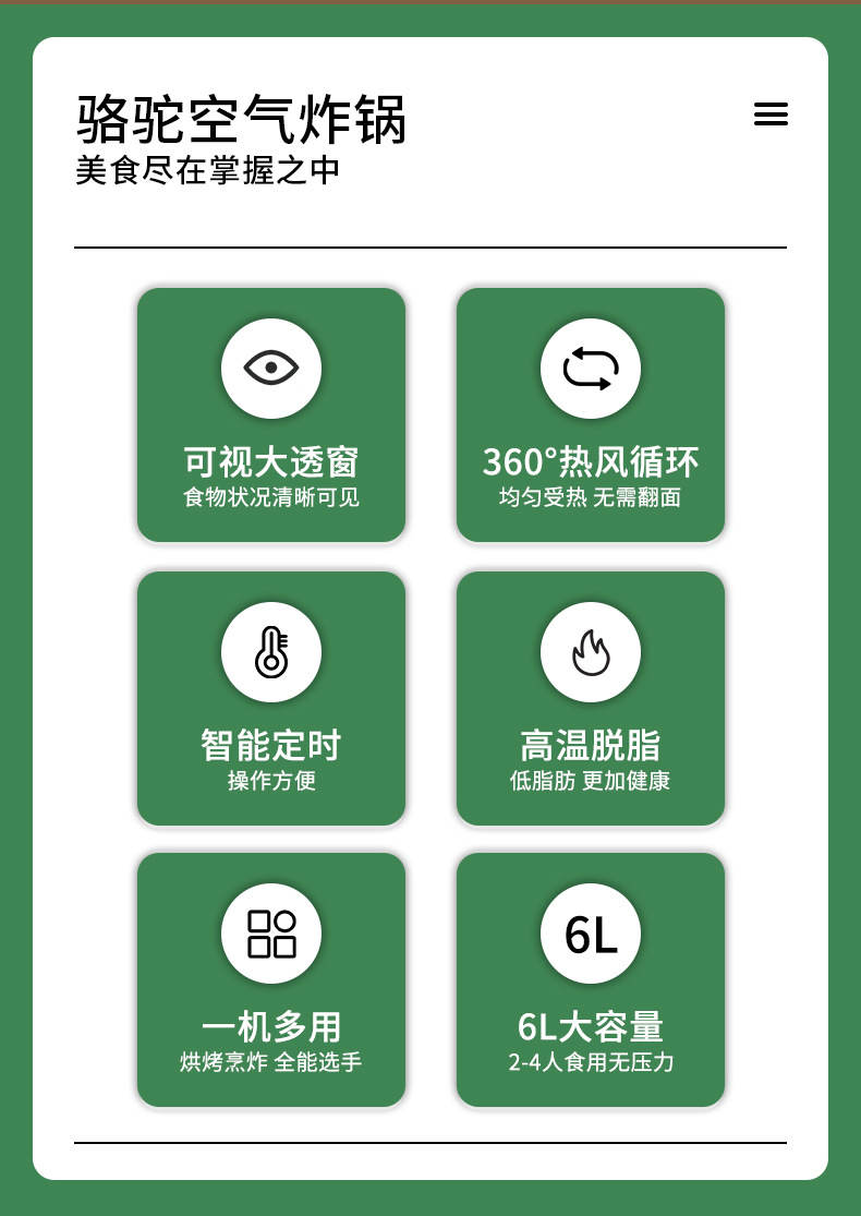 [basic model/green] upgraded large capacity + menu + 900w high firepower + three-dimensional hot air baking + oil-free and non-stick