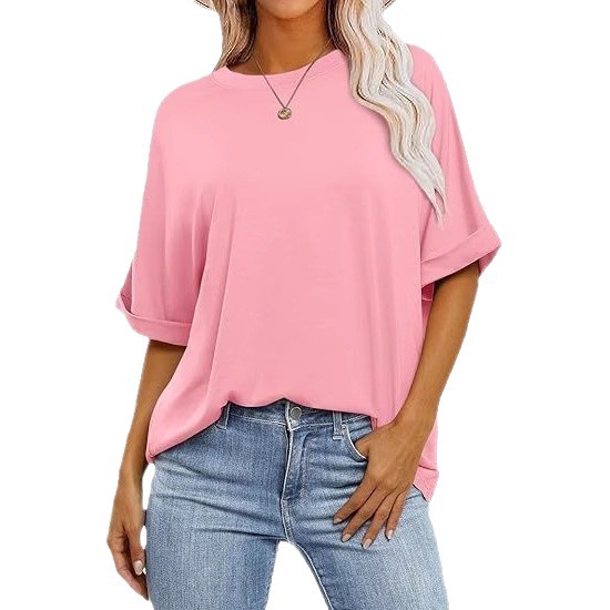 2025 Autumn New Amazon European and American New Style Oversized Loose Round Neck T-Shirt Cross-Border Foreign Trade Women's T-Shirt