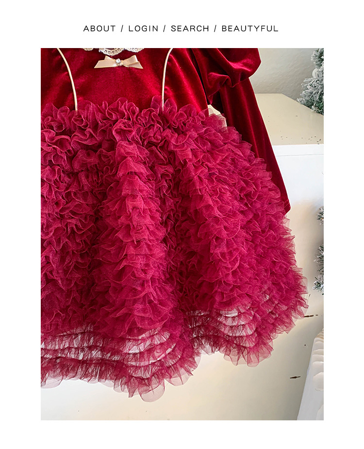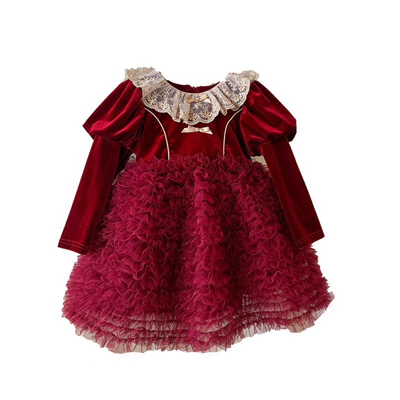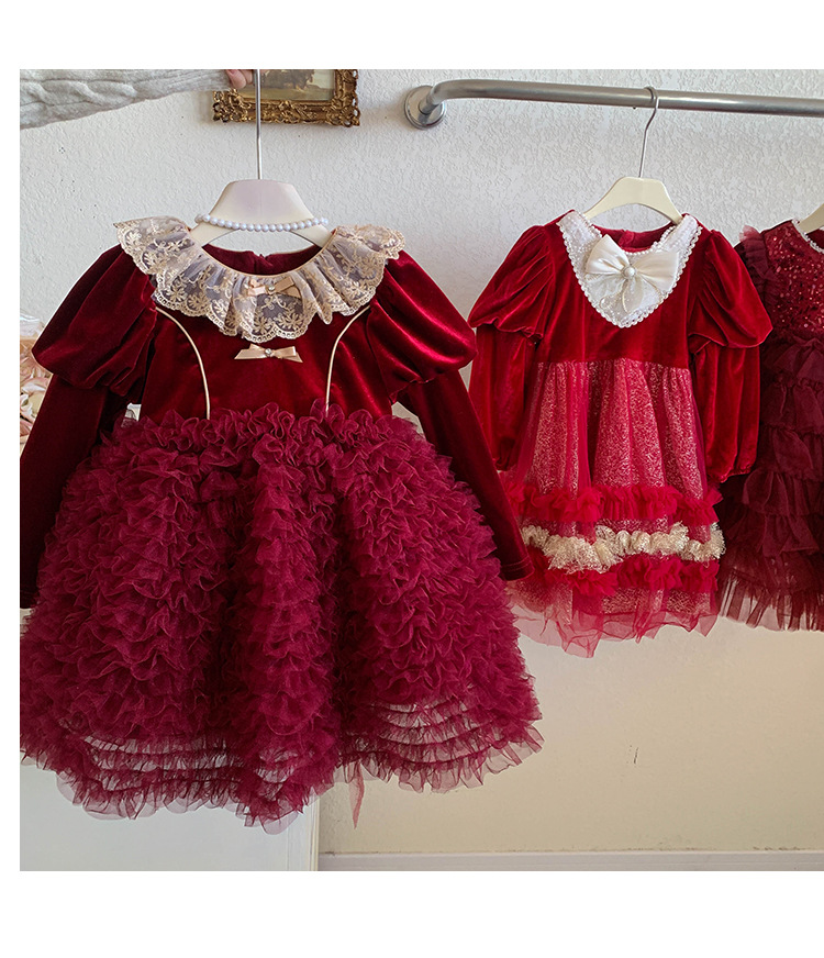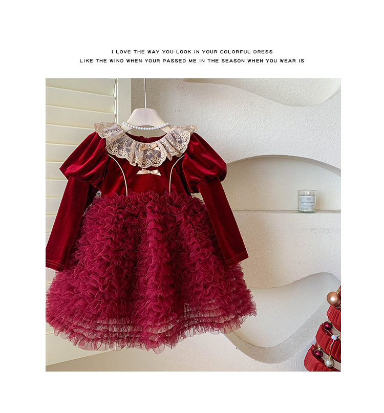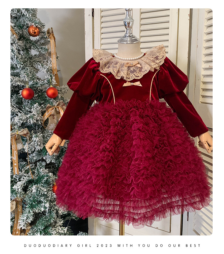 Girls Dress 25 Winter Children's Christmas and New Year Style Princess Dress Plus Velvet Little Girl Puffy Dress Cake Dress