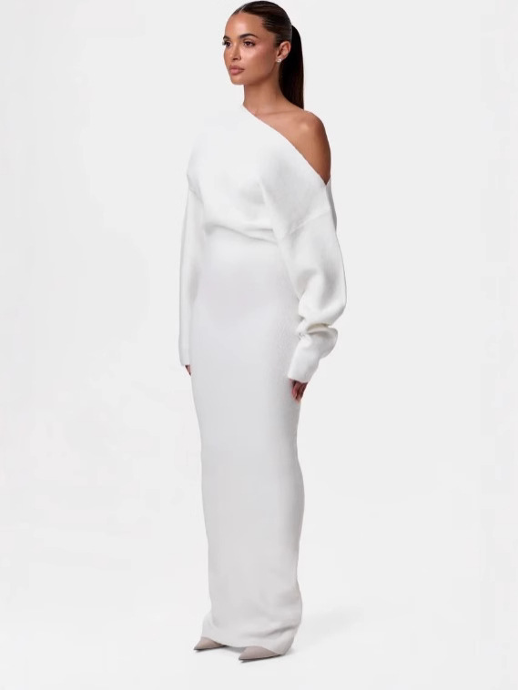 Europe and the United States sexy women's cross-border Amazon new open shoulder long sleeve slim elegant gorgeous dress