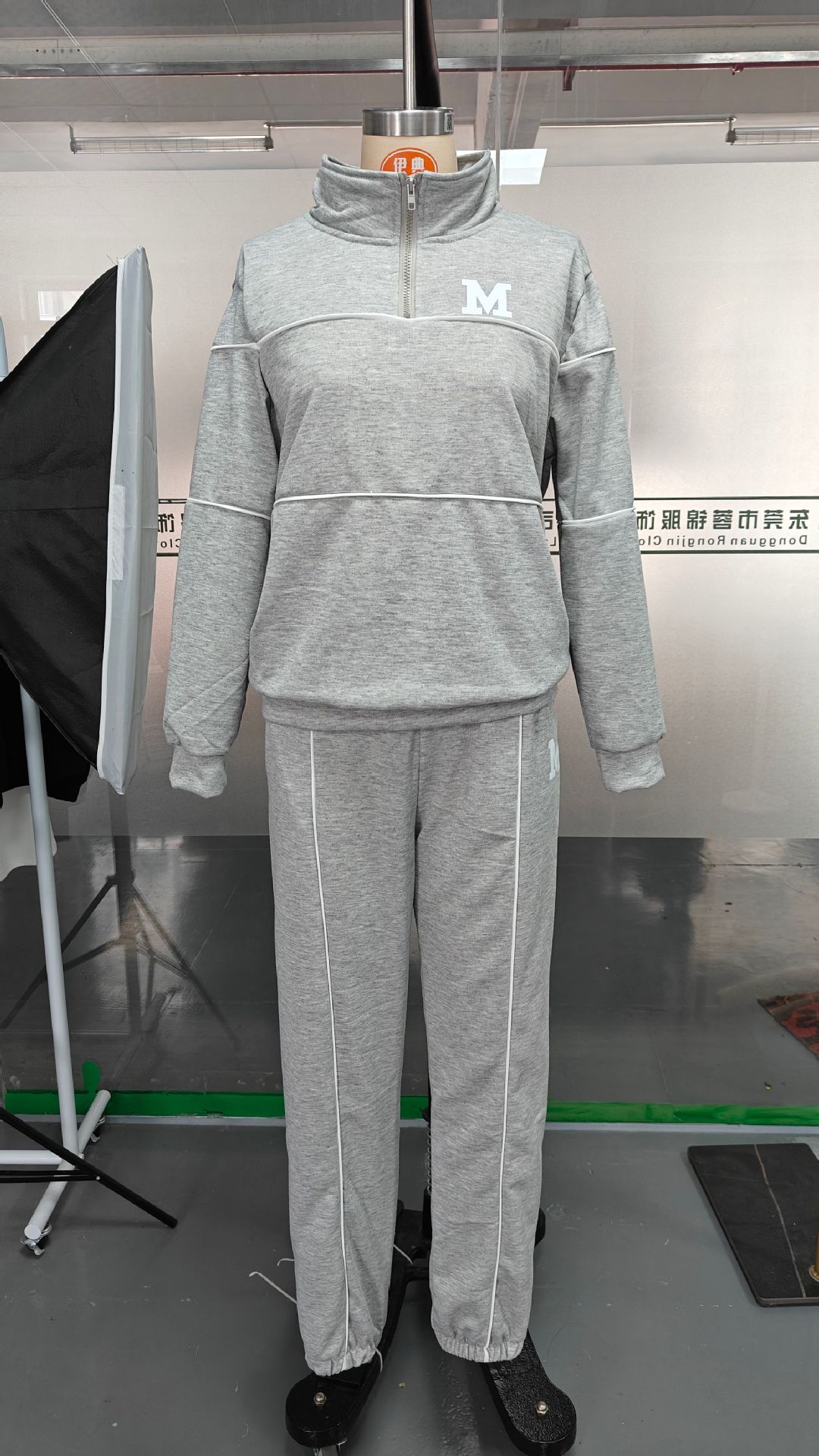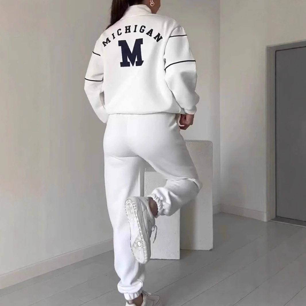 2025 Autumn and Winter European and American Amazon Cross-Border Export Women's Sweatshirt Letter Heat Transfer Zipper Casual Sports Two-Piece Set