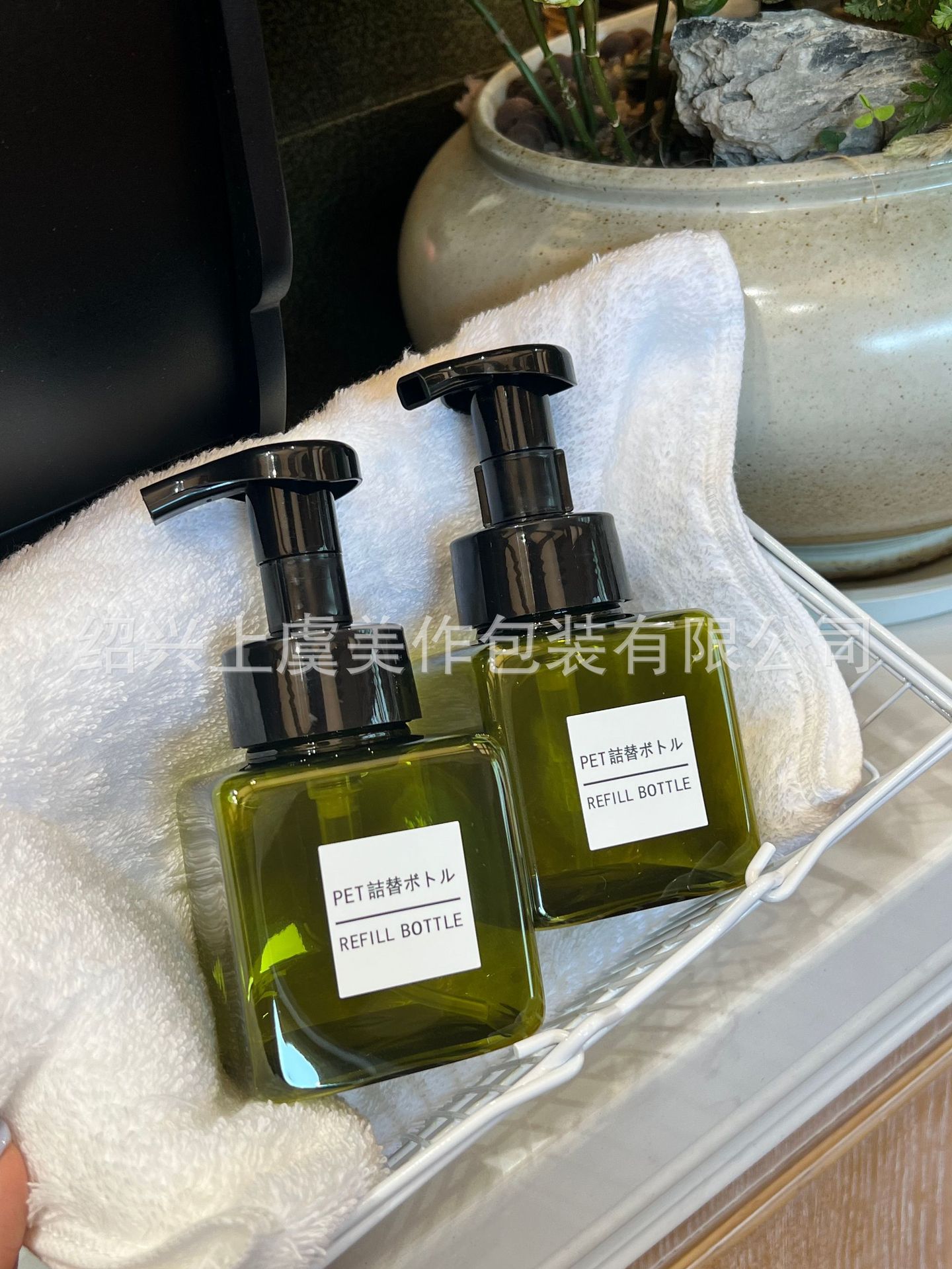 Square mousse; 250ml dark green mousse pump with buckle; pet