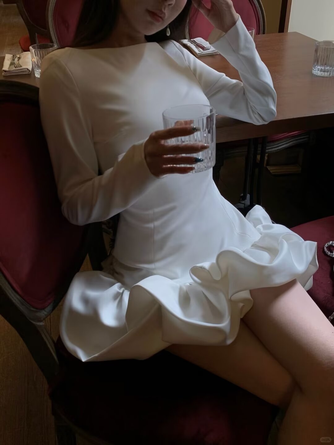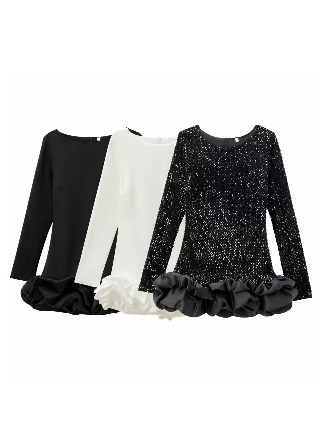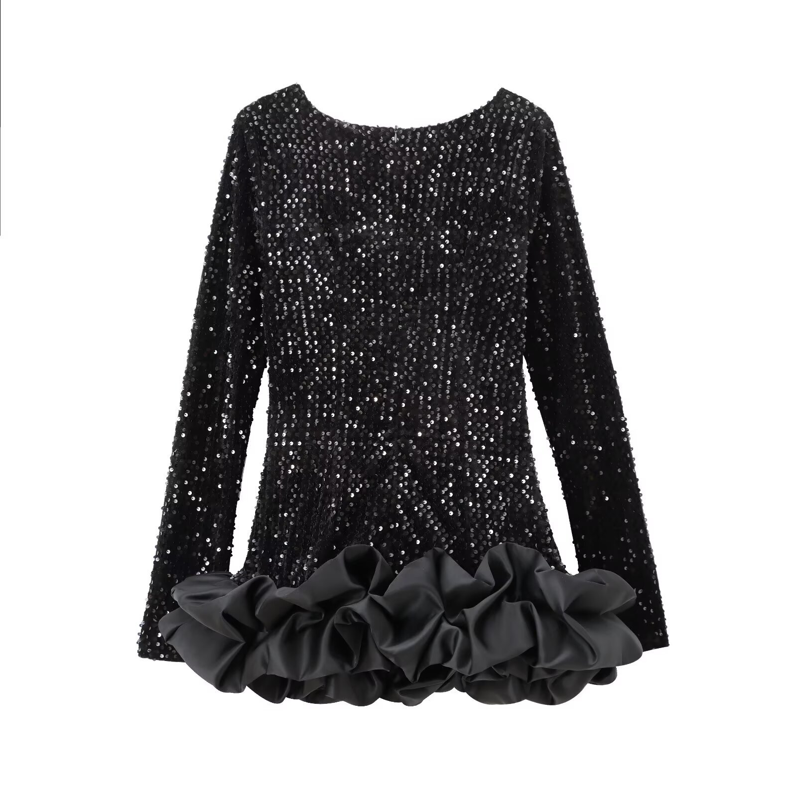 ZA Cross-border Explosions Women's Elegant Sexy French Ballet Style Round Neck Sequins Slim-fit Slimming Long-sleeve dress