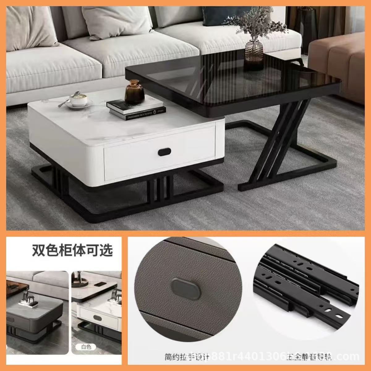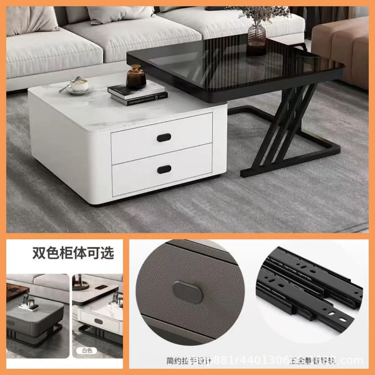 Black frame double layer white cabinet (white slate + gray glass)