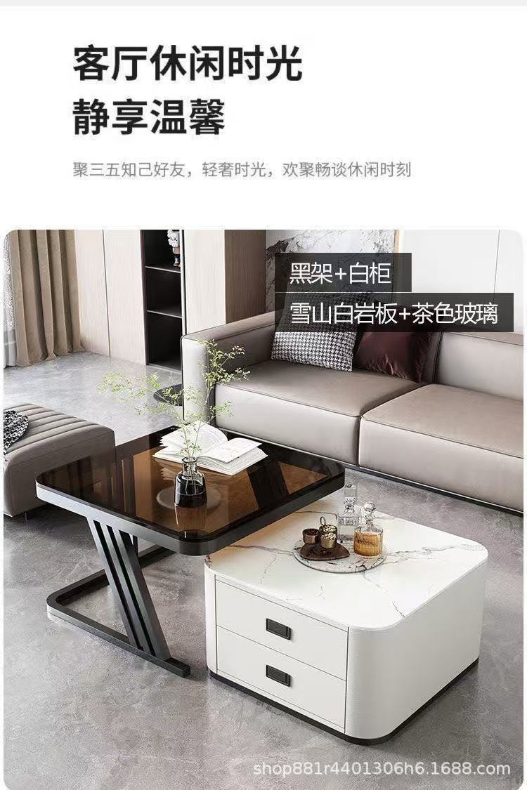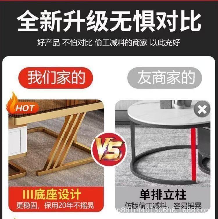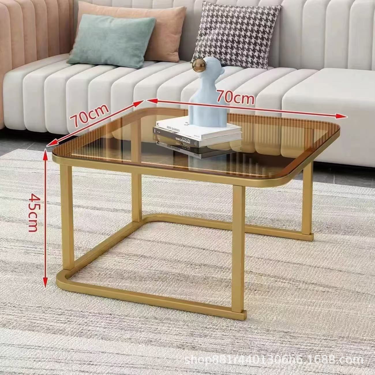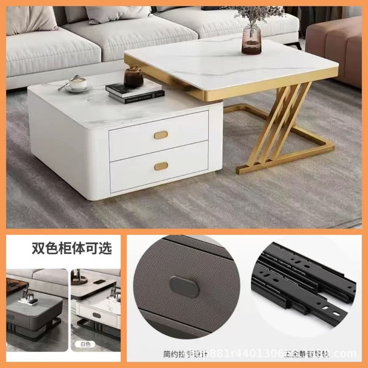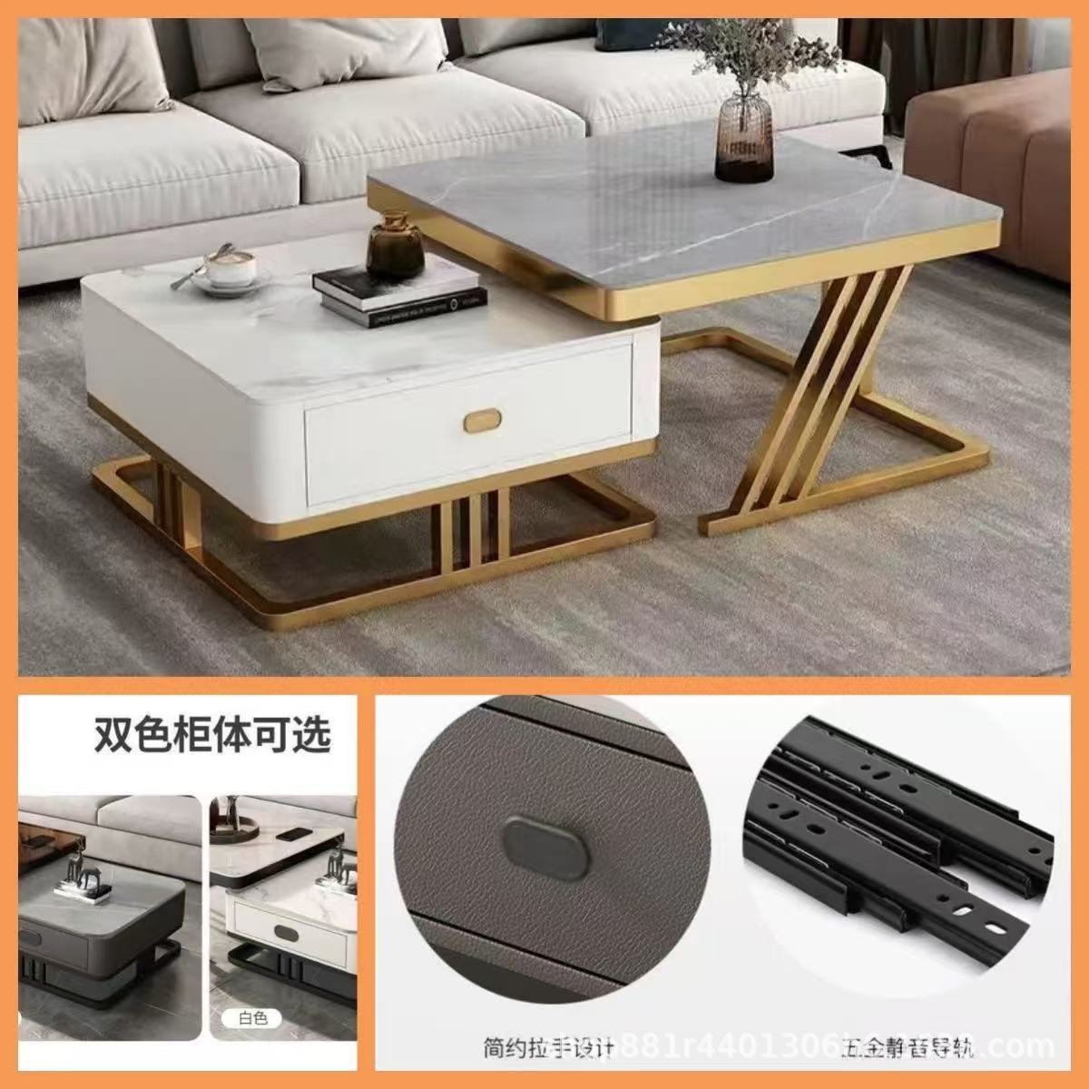 Gold frame double-layer white cabinet (white slate + brown glass)