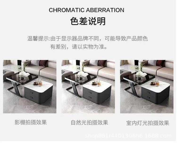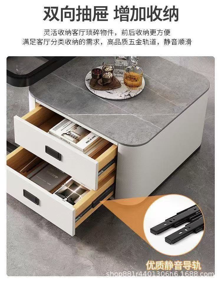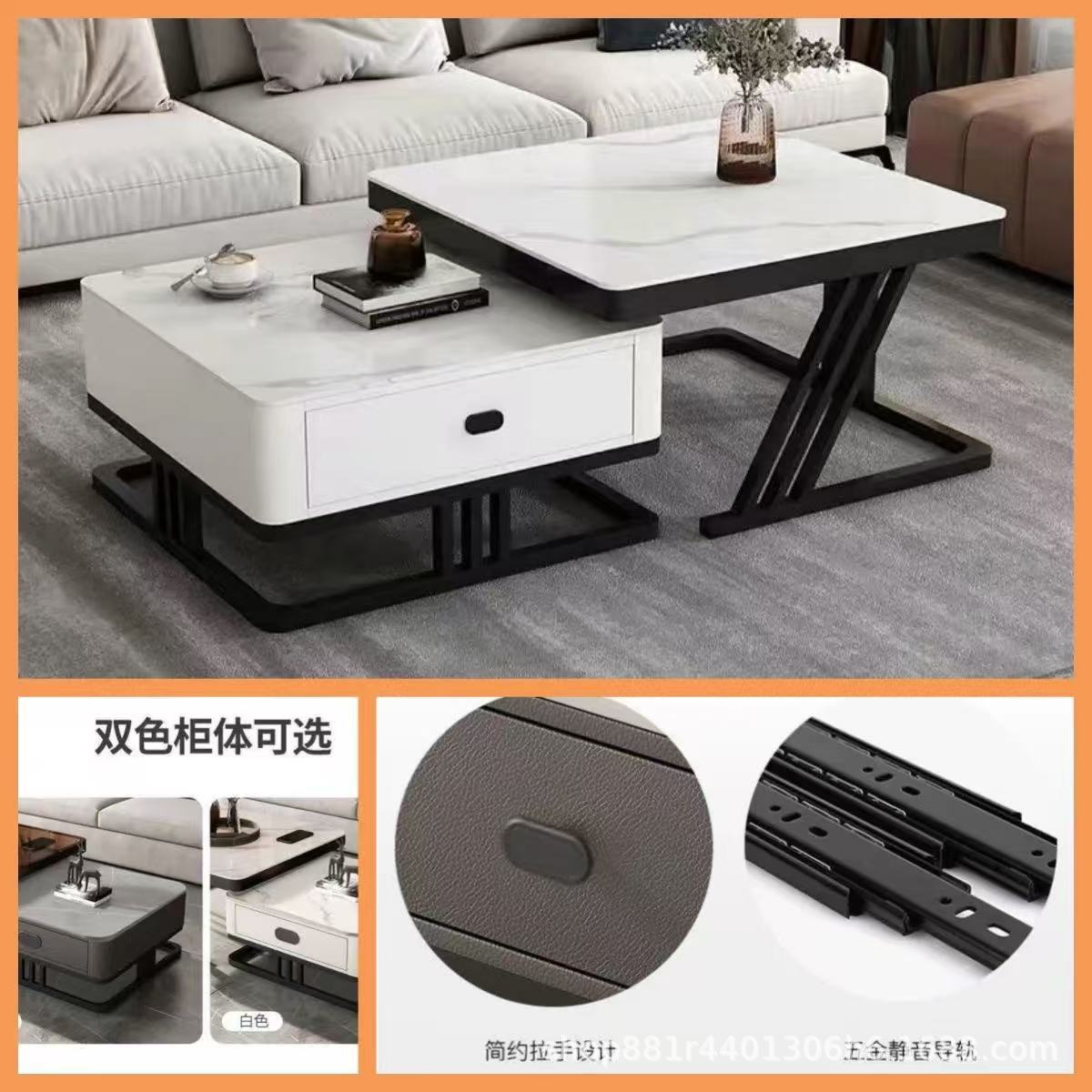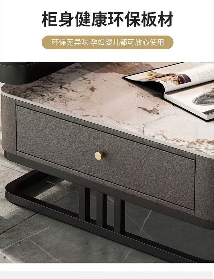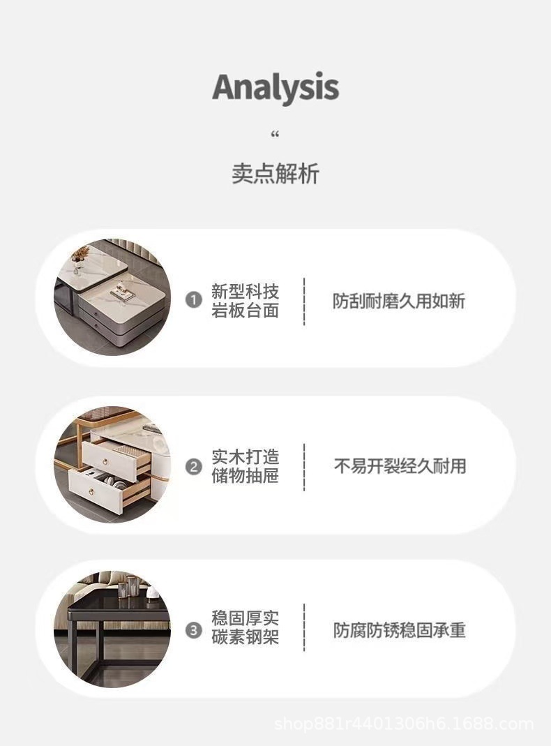 Gold frame double-layer white cabinet (white slate + brown glass)
