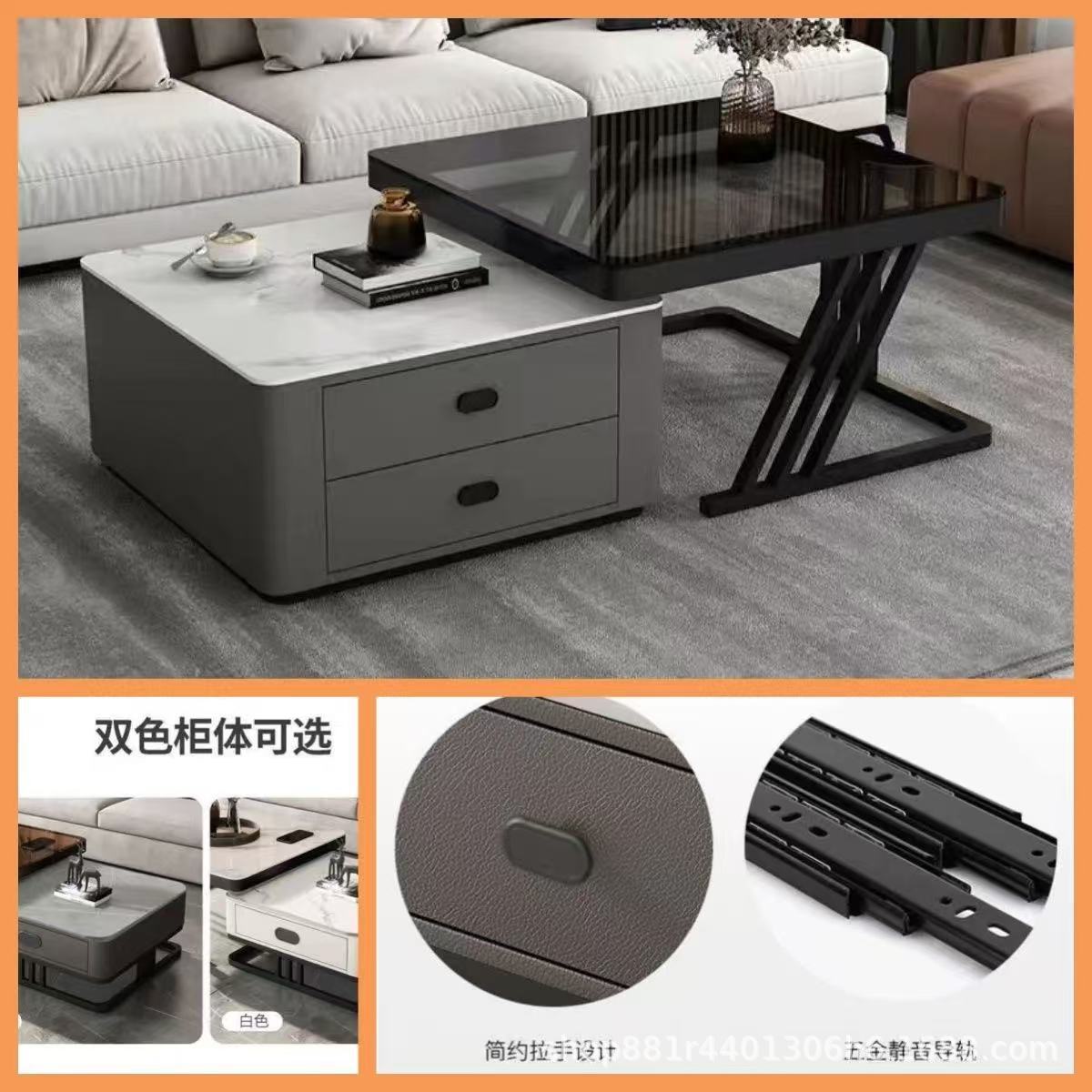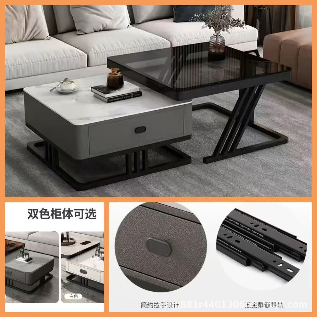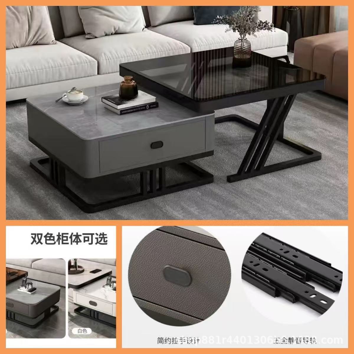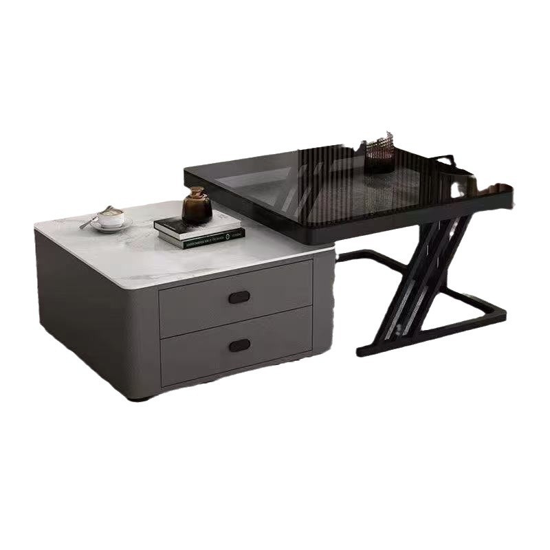 Black frame double layer gray cabinet (white slate + gray glass)