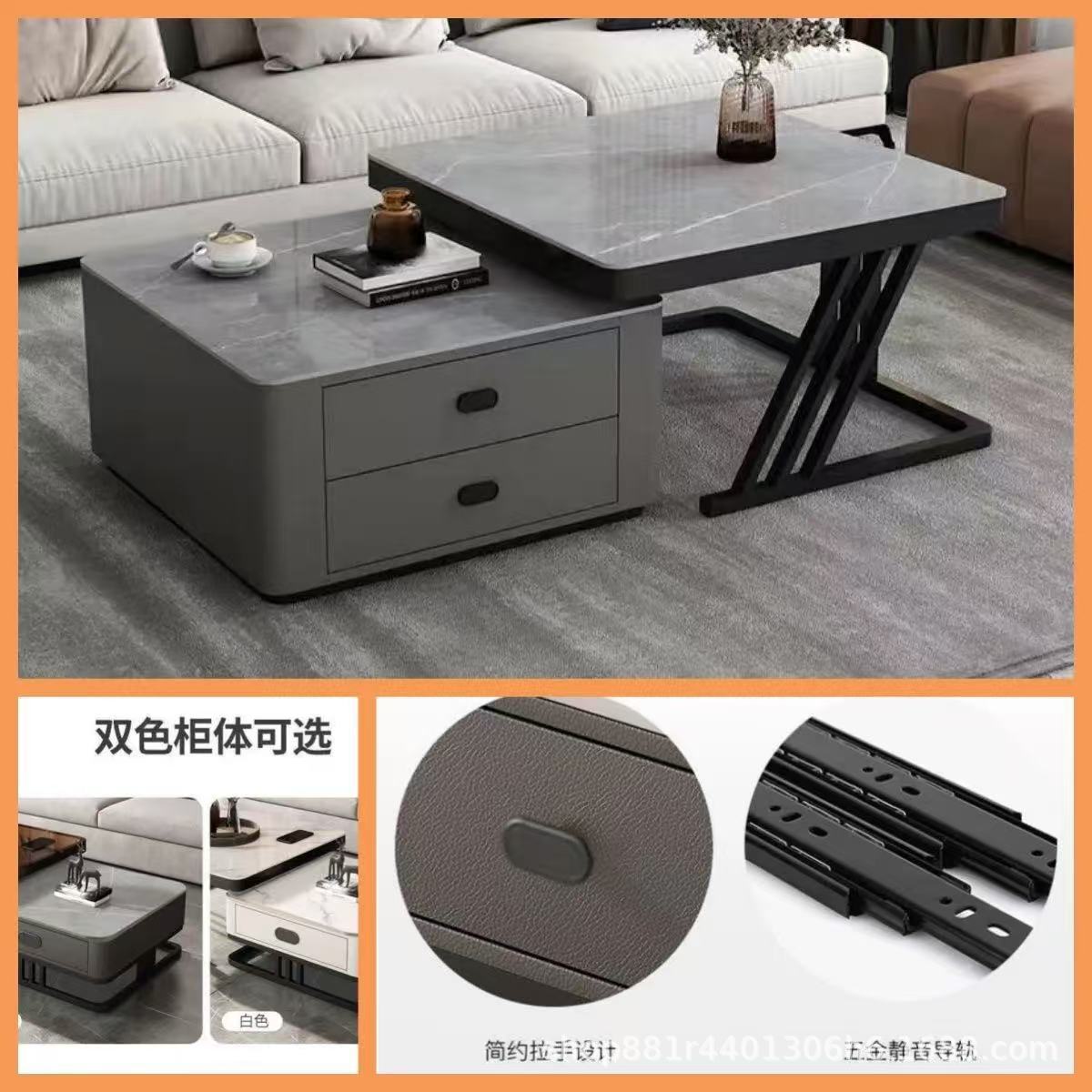 Black frame double layer gray cabinet (white slate)