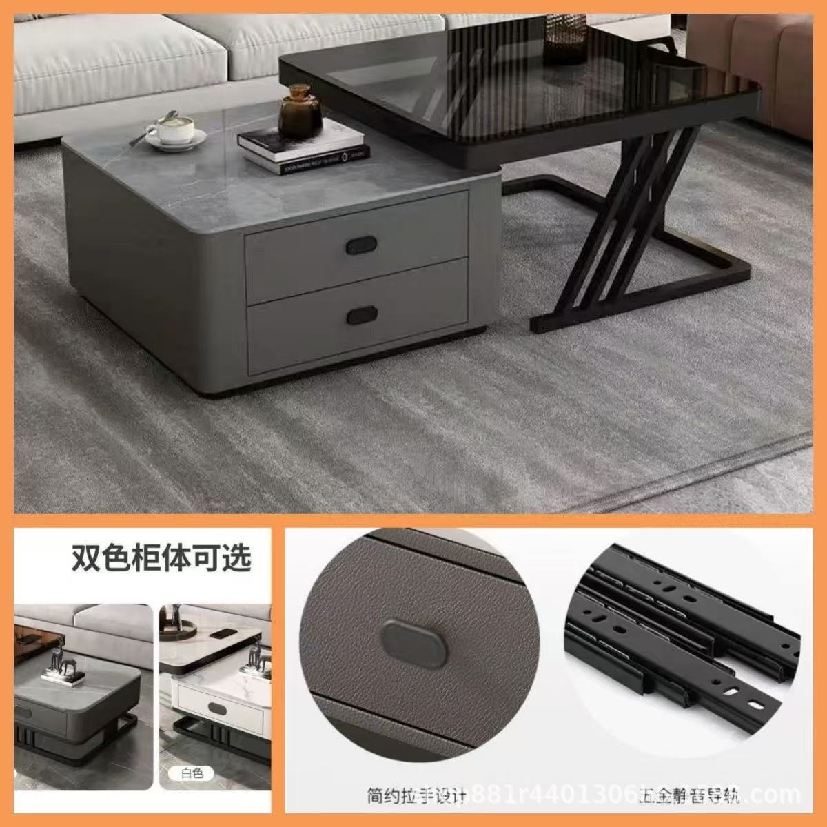 Black frame double layer gray cabinet (gray slate + gray glass)