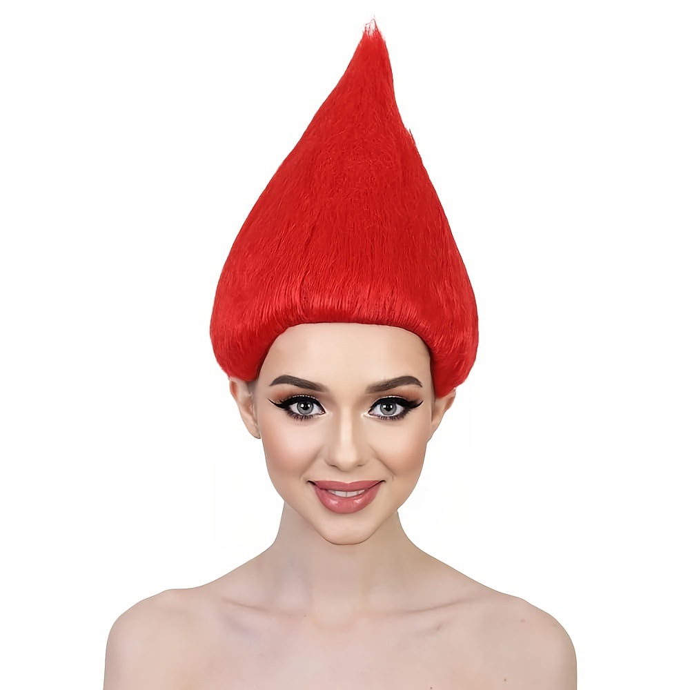 Cross-Border Direct Supply Flame-Headed Trolls Wig Halloween Troll Festival Anti-Gravity Water Drop Head Onion-Shaped Short Hair
