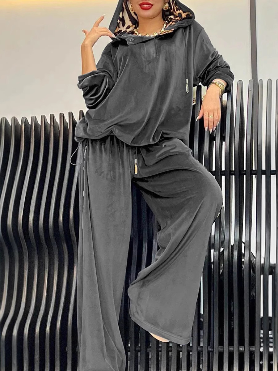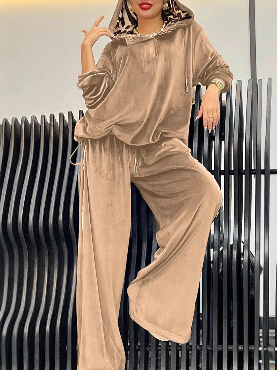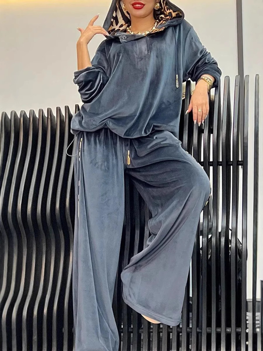 2025 European and American Cross-border Amazon Independent Station Loose Casual Two-piece Leopard Hoodie and Pants suit Women