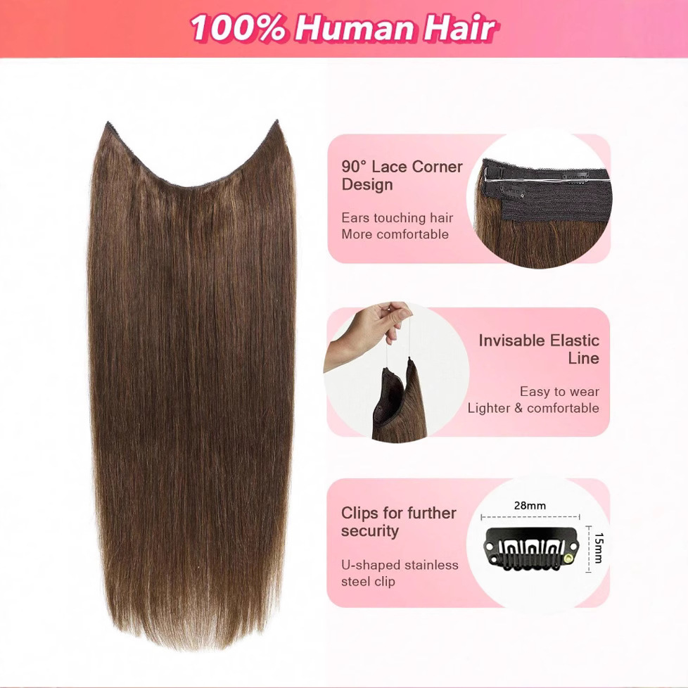 Cross-border European and American Women's Real Hair Wig Dyeable One-piece Fishing Line Hair Curtain Real Hair halohair