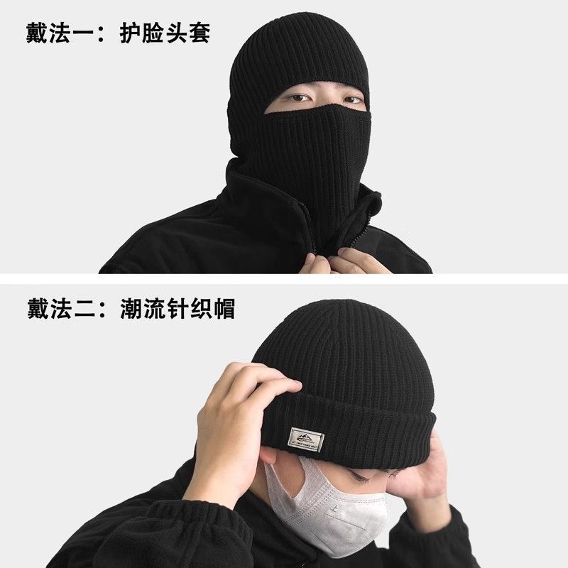 Winter Balaclava Hat for Men, Knitted Warm Woolen Hat, Windproof Ear Protection Mask, Outdoor Cycling Cold Hat