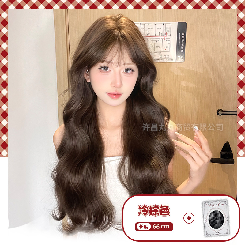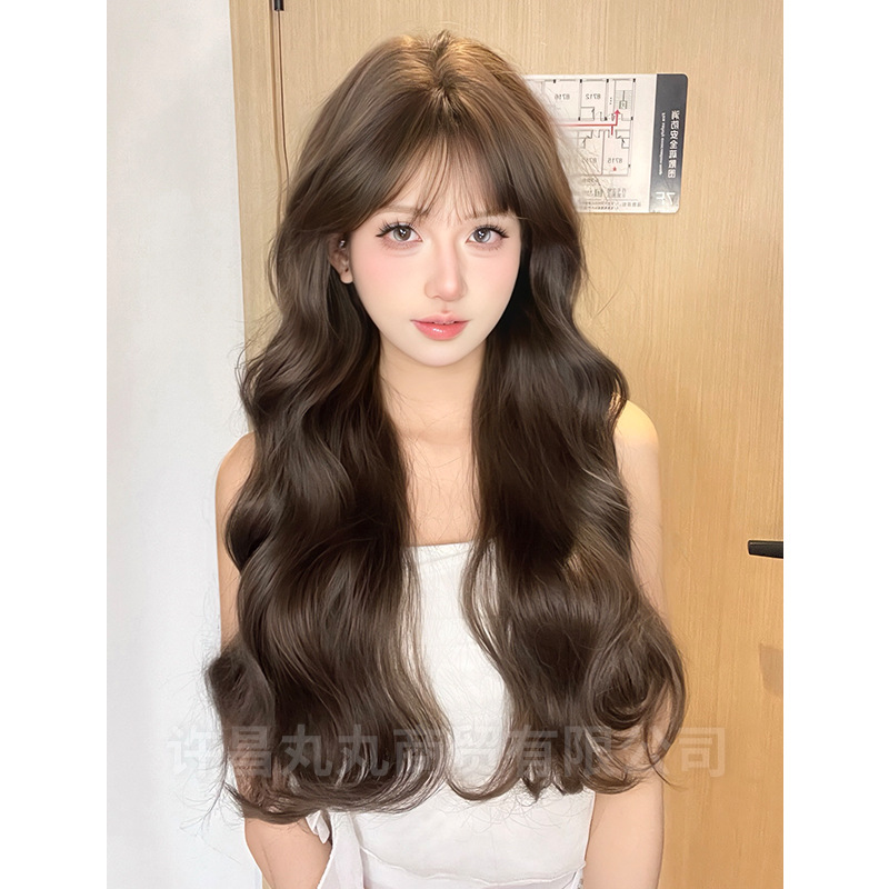 Maruwan Wig Women's Long Hair Artificial Hair Natural Full Head Cover Korean Wave Long Curly Hair Egg Roll Wig Cover