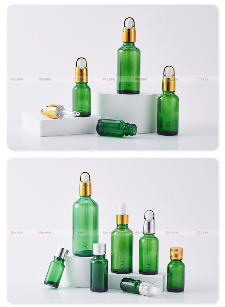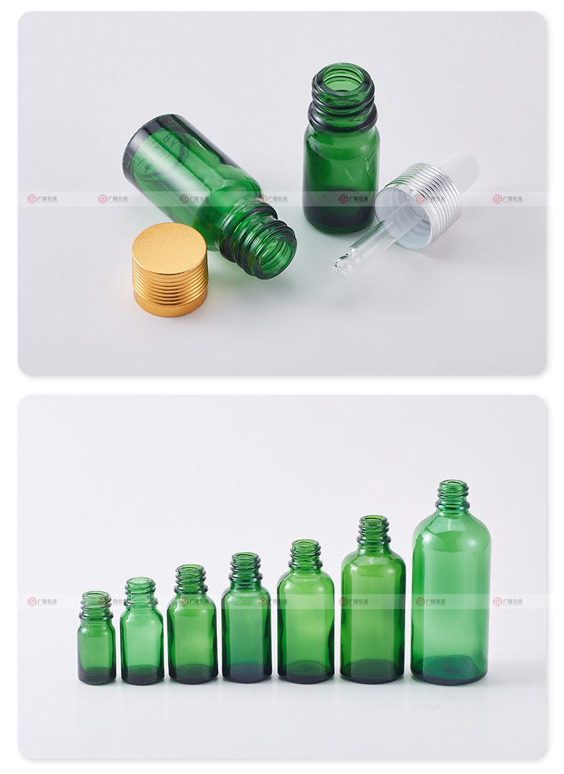 20ml (468 pieces/box), please take the whole box; green bottle + threaded gold ring + white plastic head + dropper; glass