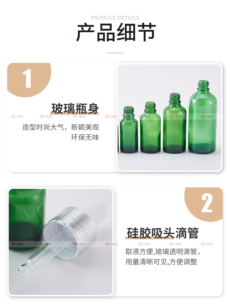 30ml (330 pieces/box), please take the whole box; green bottle + silver flower basket cap + dropper; glass