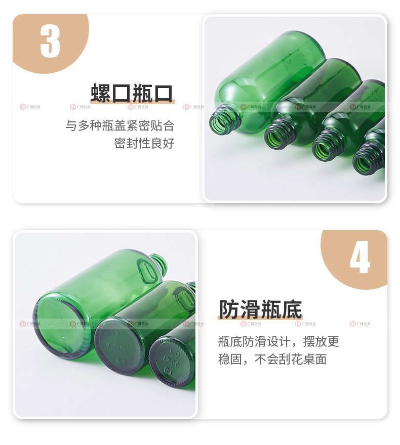 30ml (330 pieces/box), please take the whole box; green bottle + threaded gold cap + non-porous concave inner plug; glass
