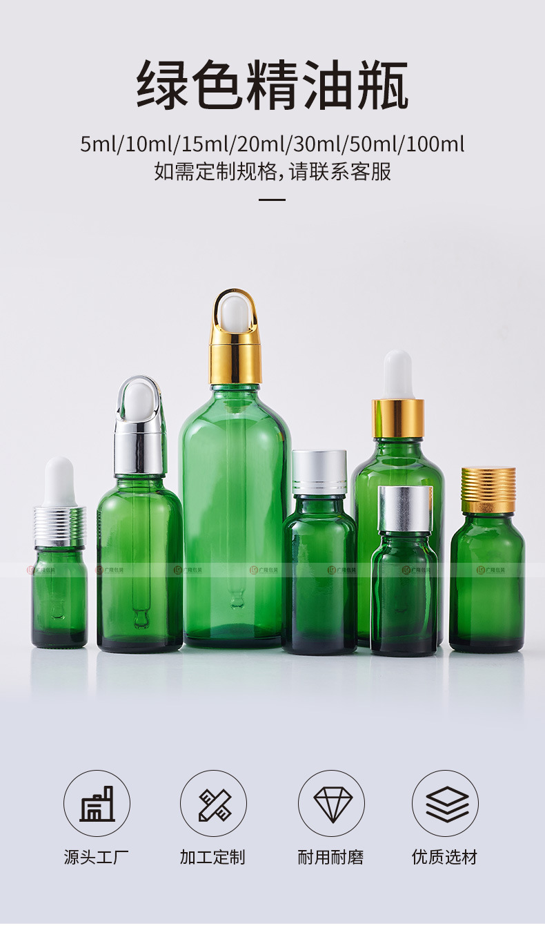 15ml (468 pieces/box), please take the whole box; green bottle + threaded gold ring + white plastic head + dropper; glass