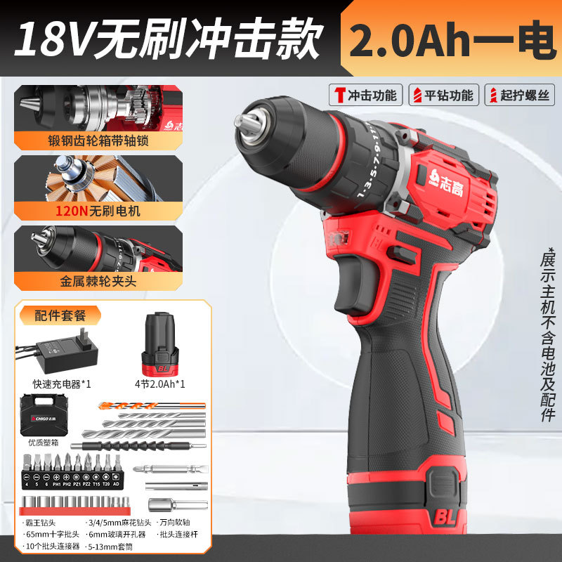 18v brushless impact 2.0ah small steel cannon + one battery and one charge gift package