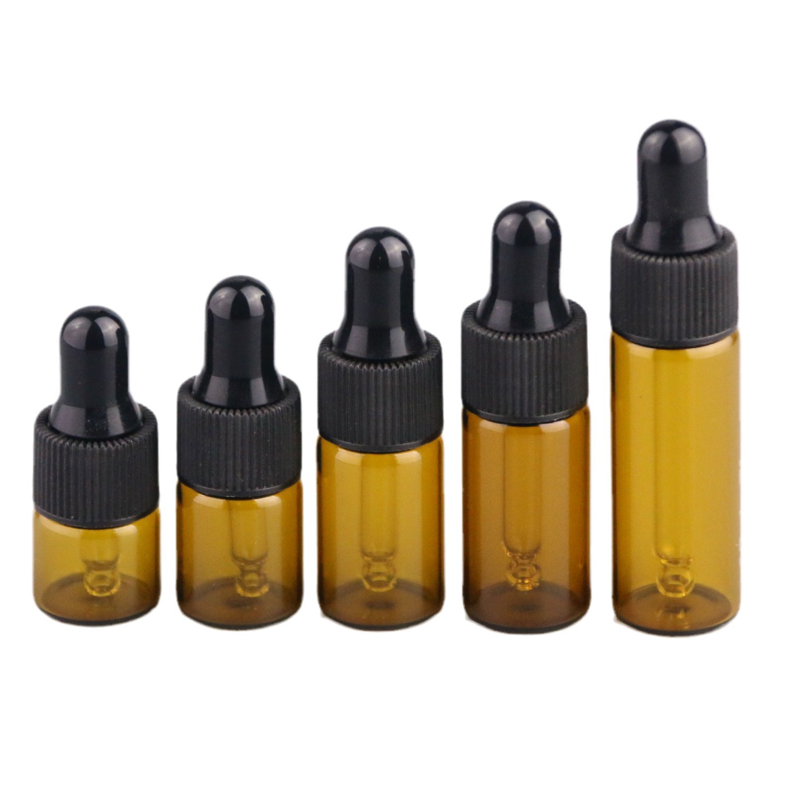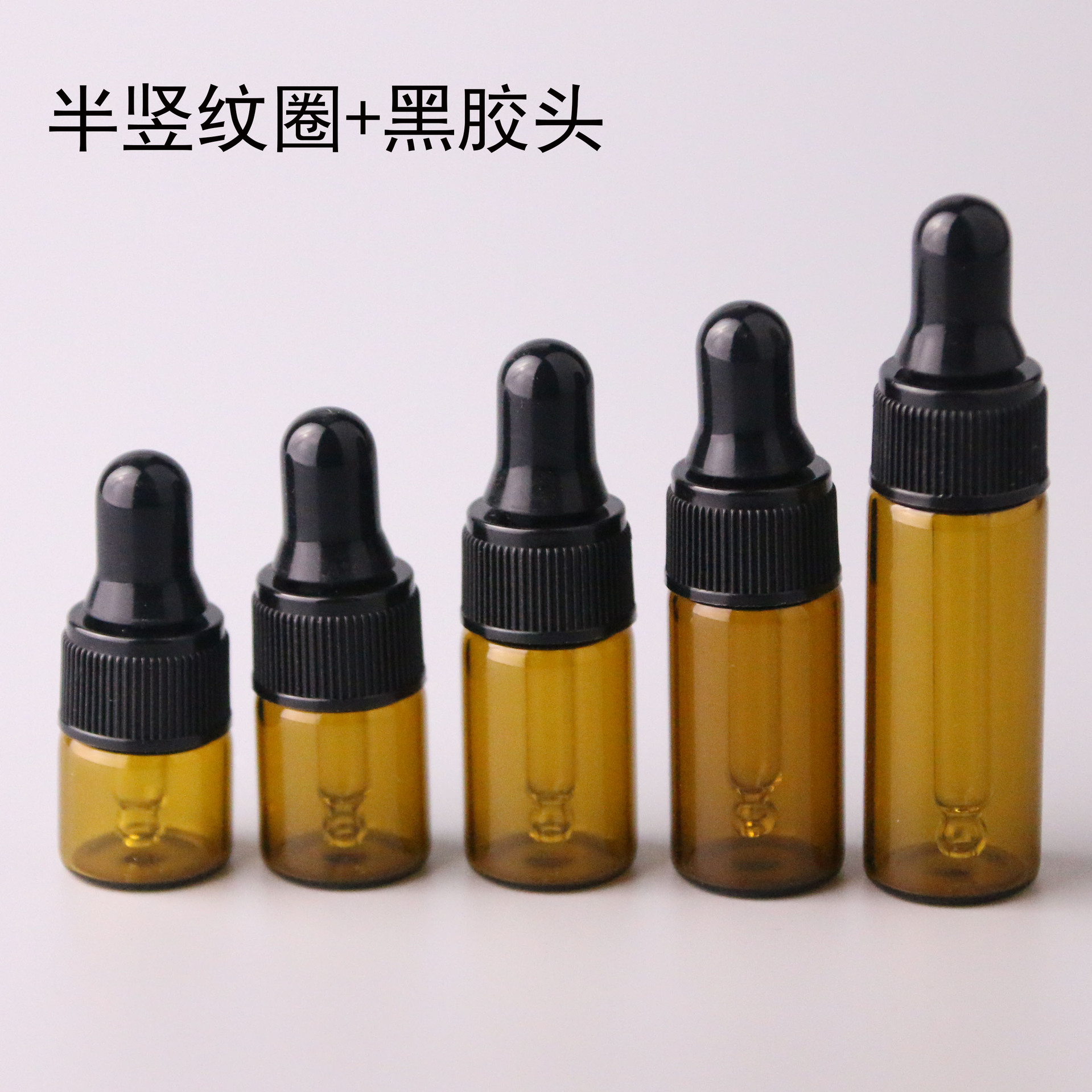 Brown bottle + black semi-vertical ring + black plastic head; 5ml; glass