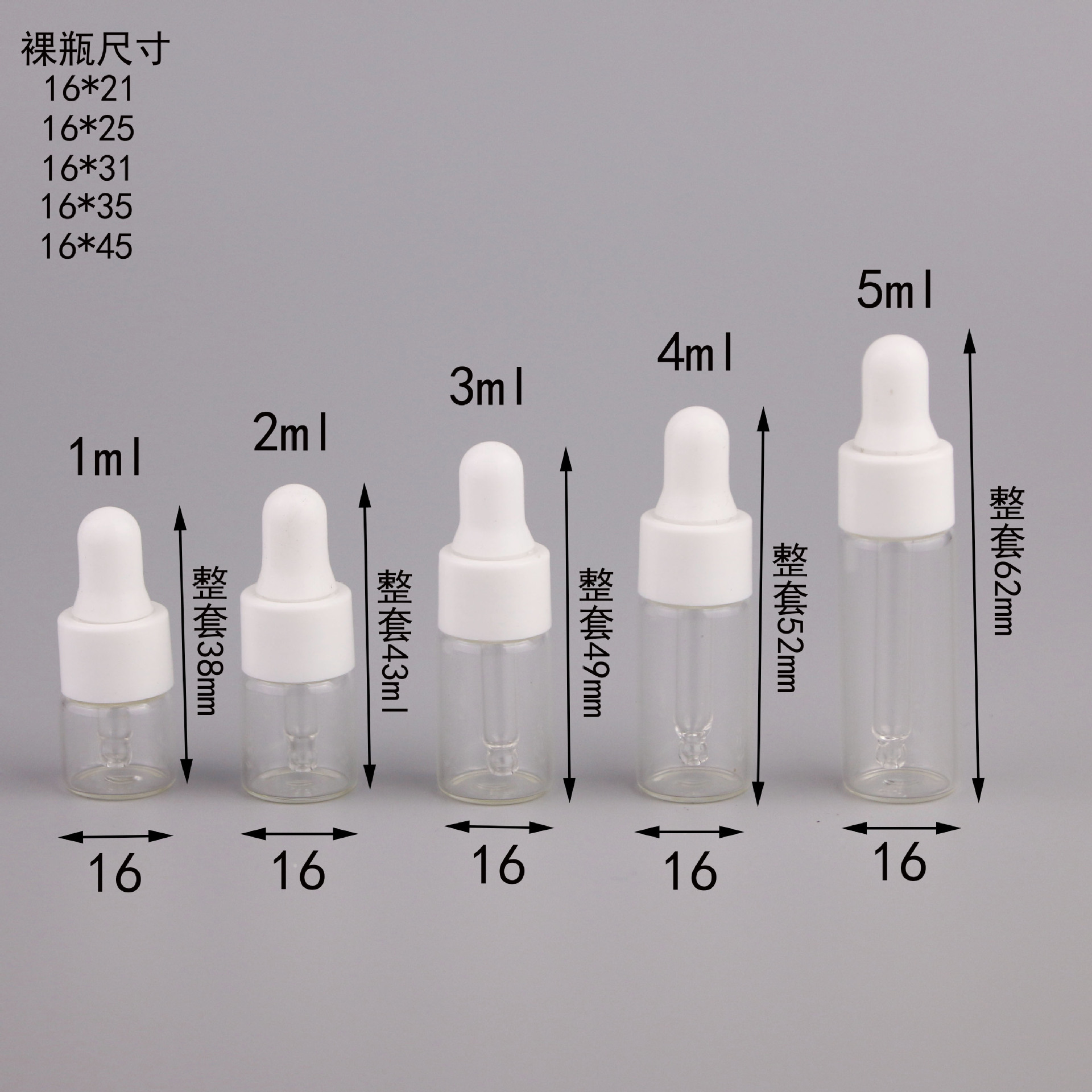Transparent bottle + white light bezel + white plastic head; 1ml; glass