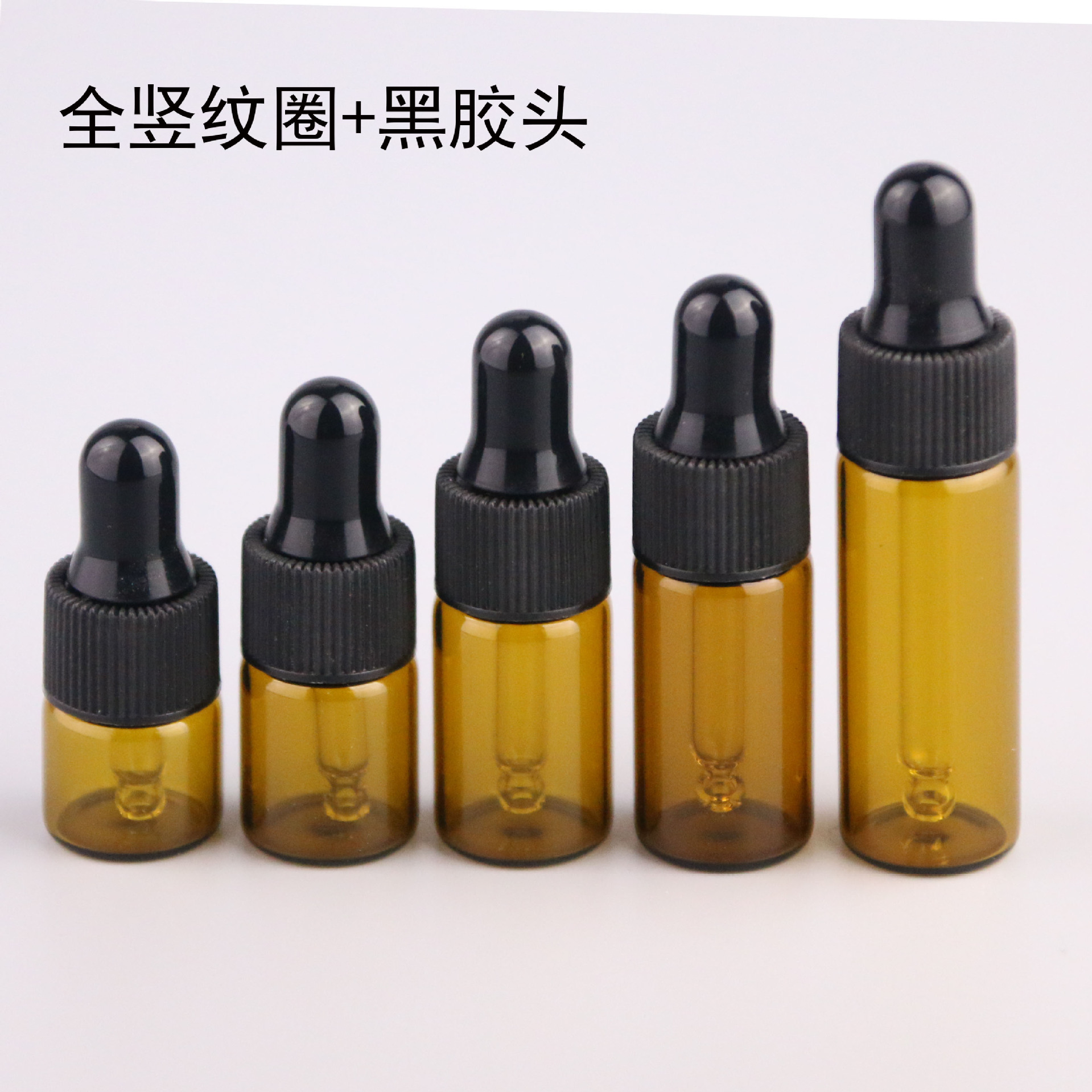 Brown bottle + black full vertical pattern ring + black plastic head; 3ml; glass