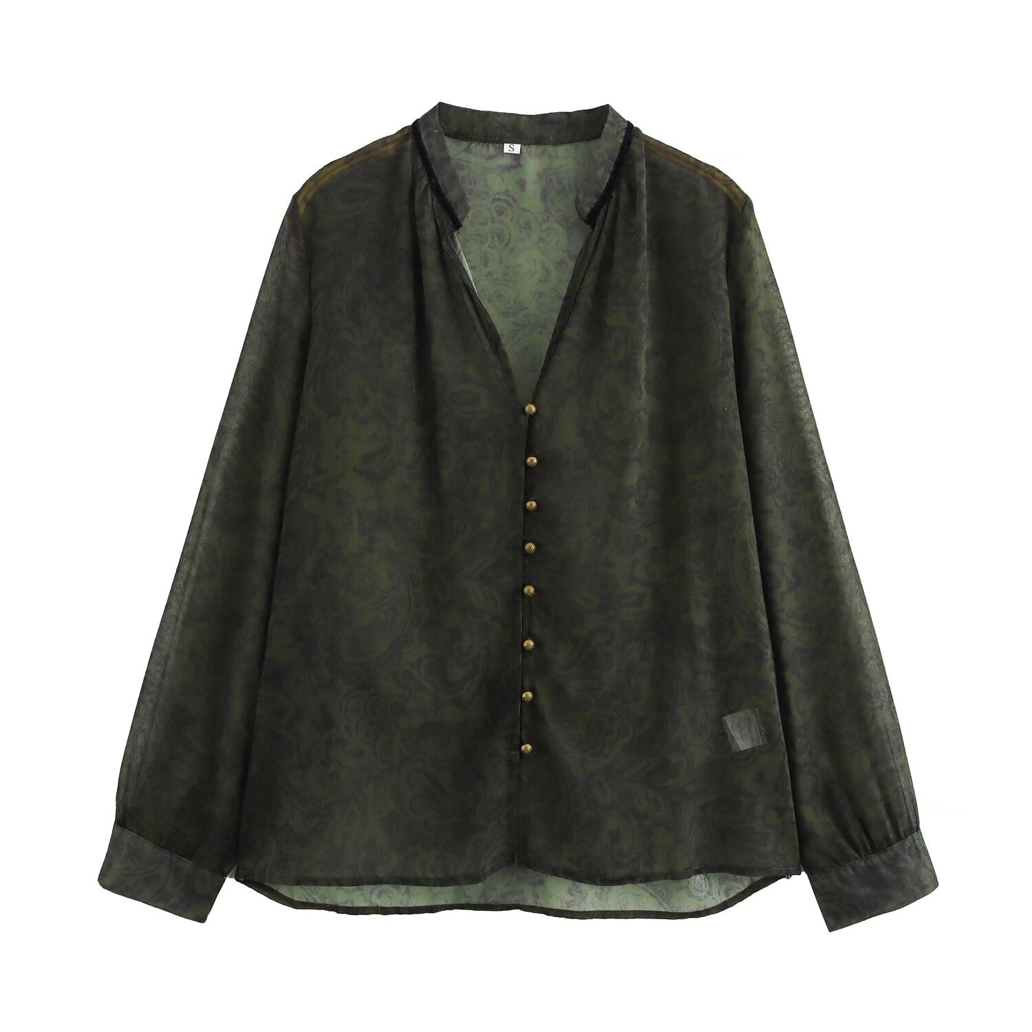 UC & ZA European and American Cross-border Amazon Women's V-neck Velvet Trim Loose Casual Printed Shirt 9820620