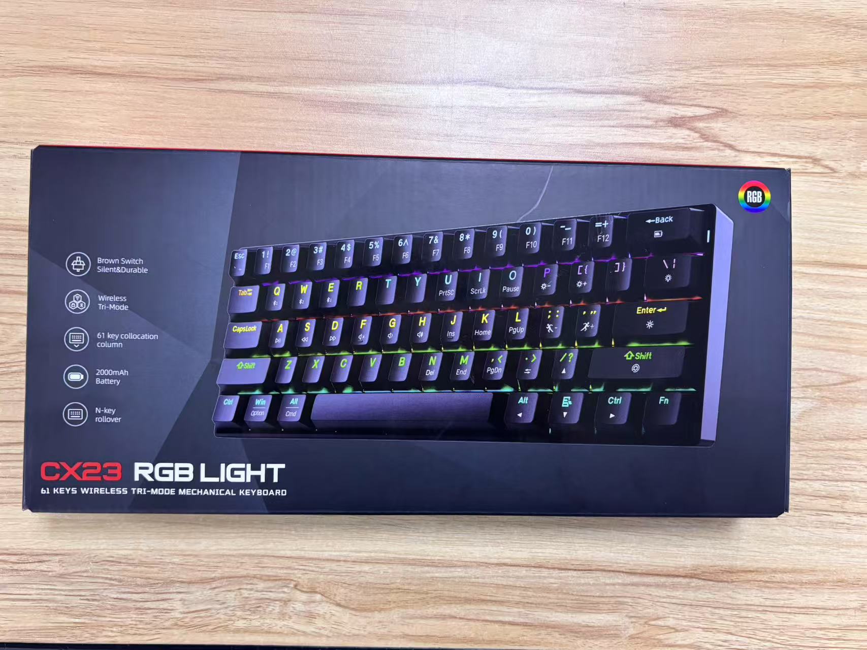 3.塑胶上盖、全键无冲,24种灯效模式