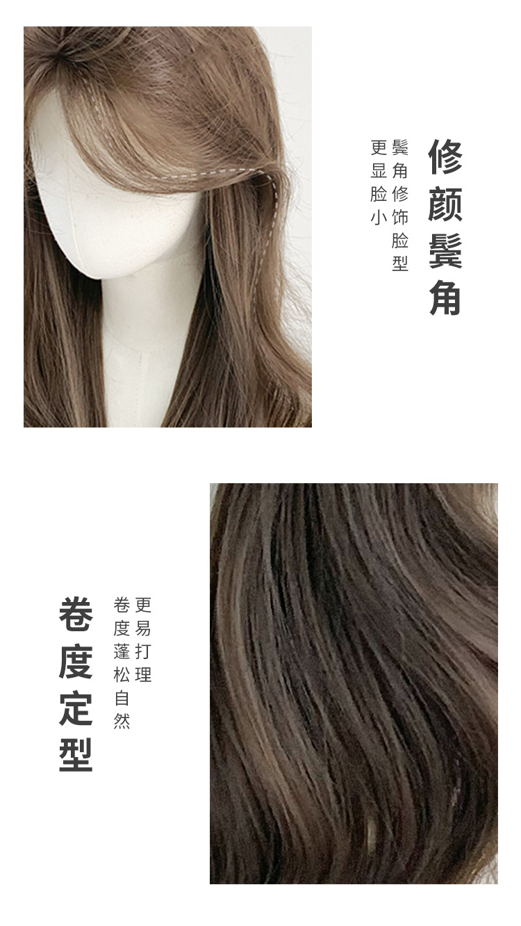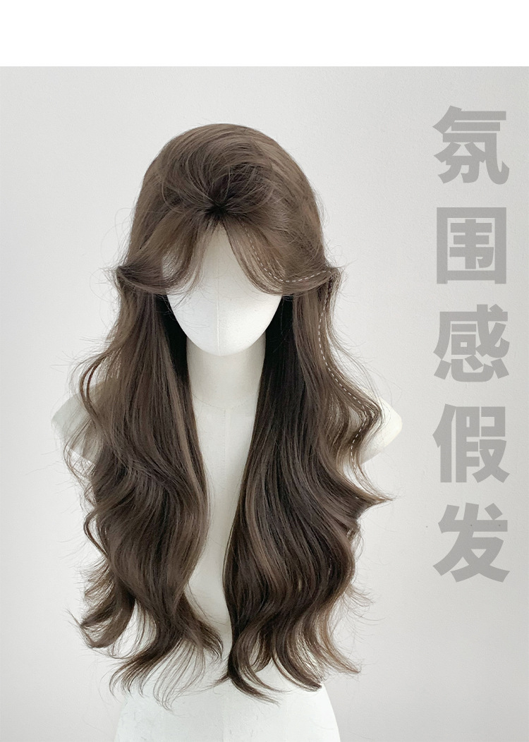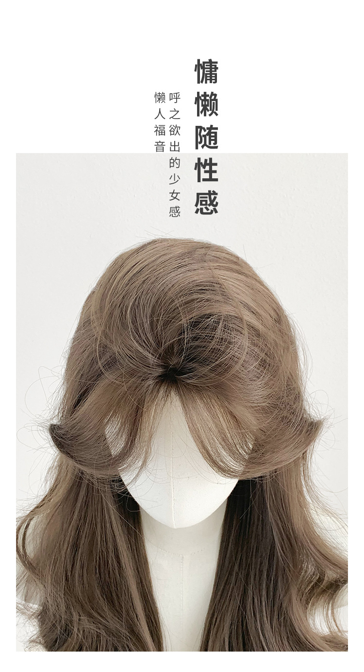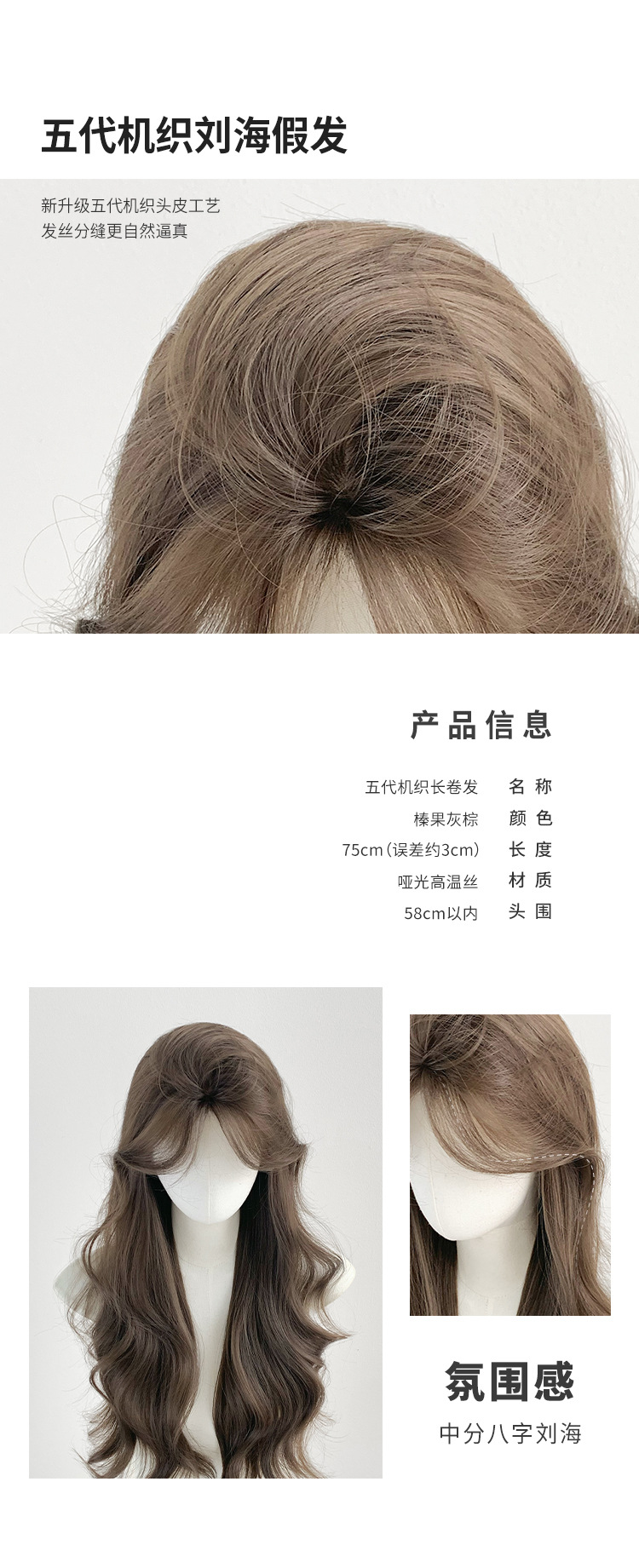 Autumn solid wig hazelnut gray brown color female full head cover daily curly hair big wave realistic modeling wholesale cross-border
