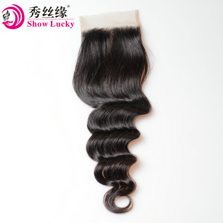 款式:真人假发发帘和发块 loose deep human hair with 4*4 lace closure