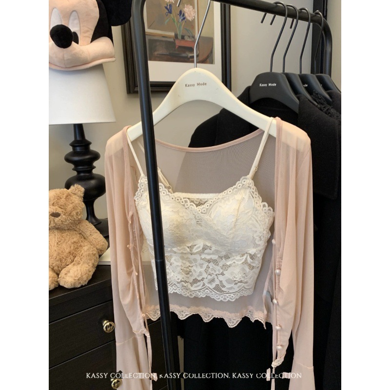 Pure Desire Sexy Lace Small Camisole Vest for Women with Chest Pad Inner Wear Outer Wear Slim-fit Slimming Short Beautiful Back Top