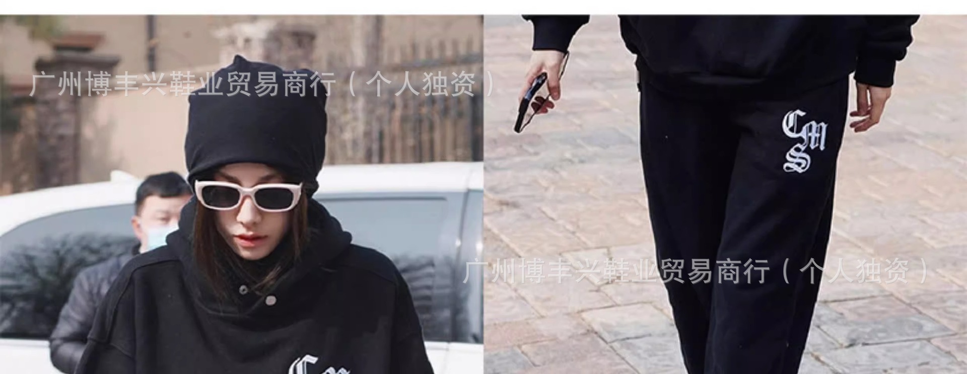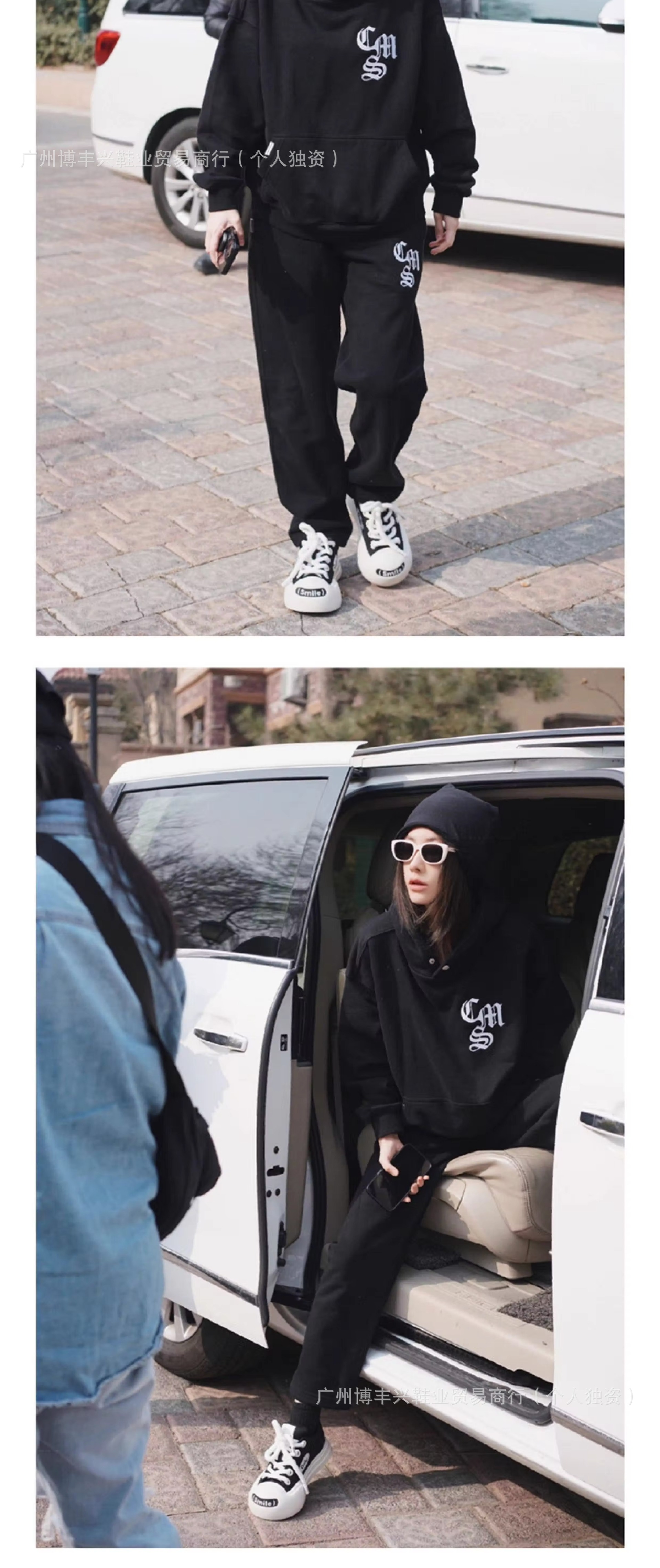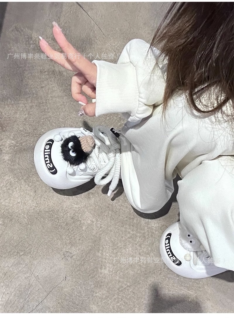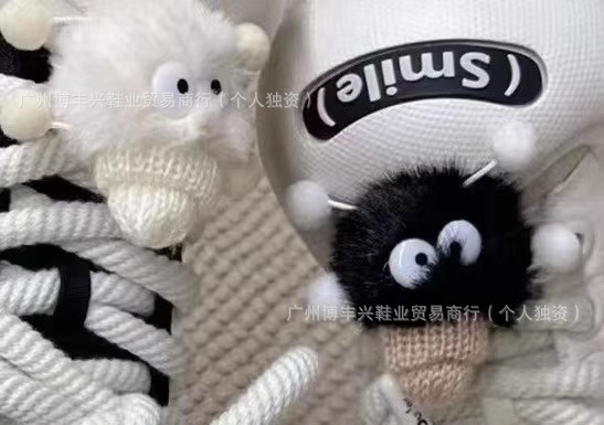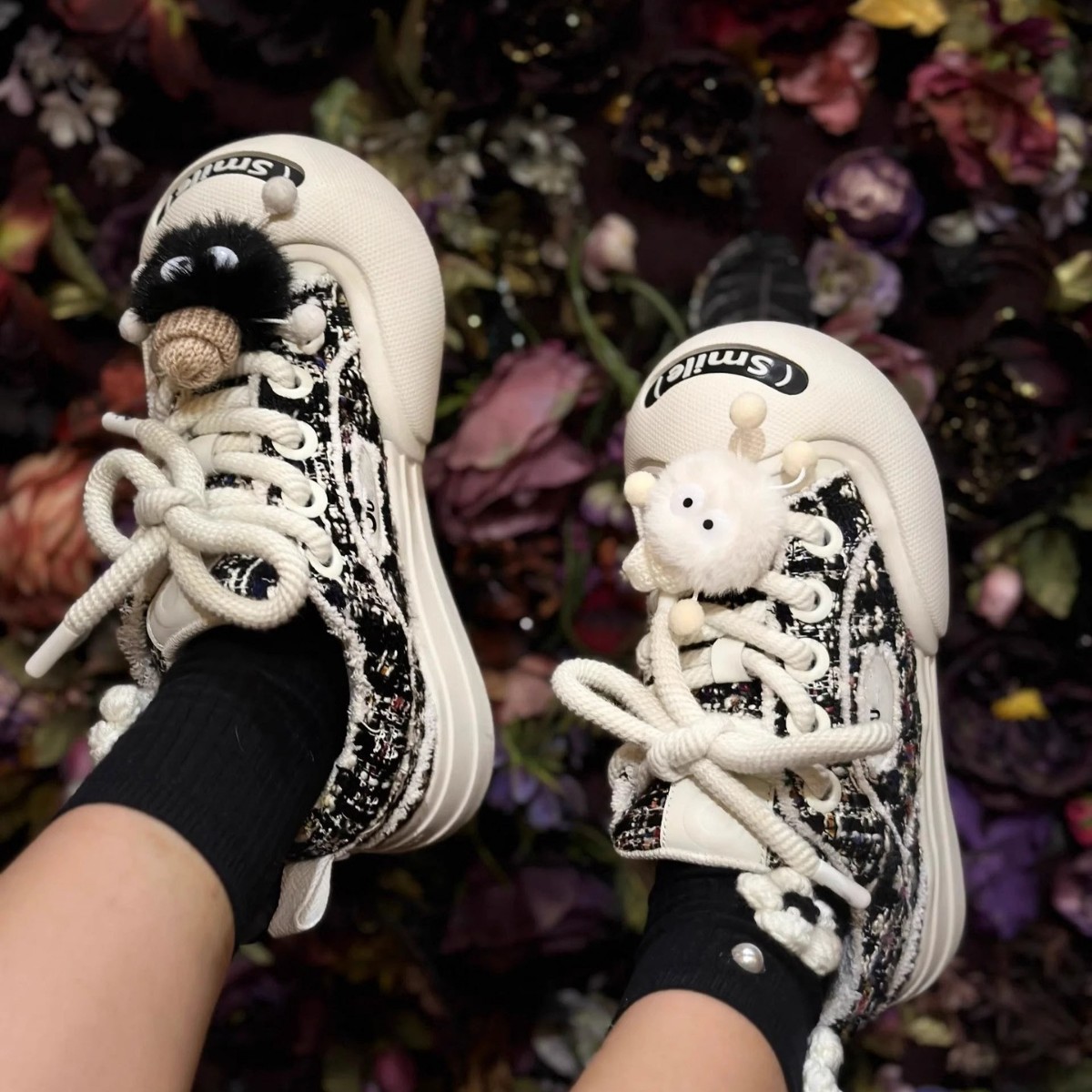 All black with pom poms