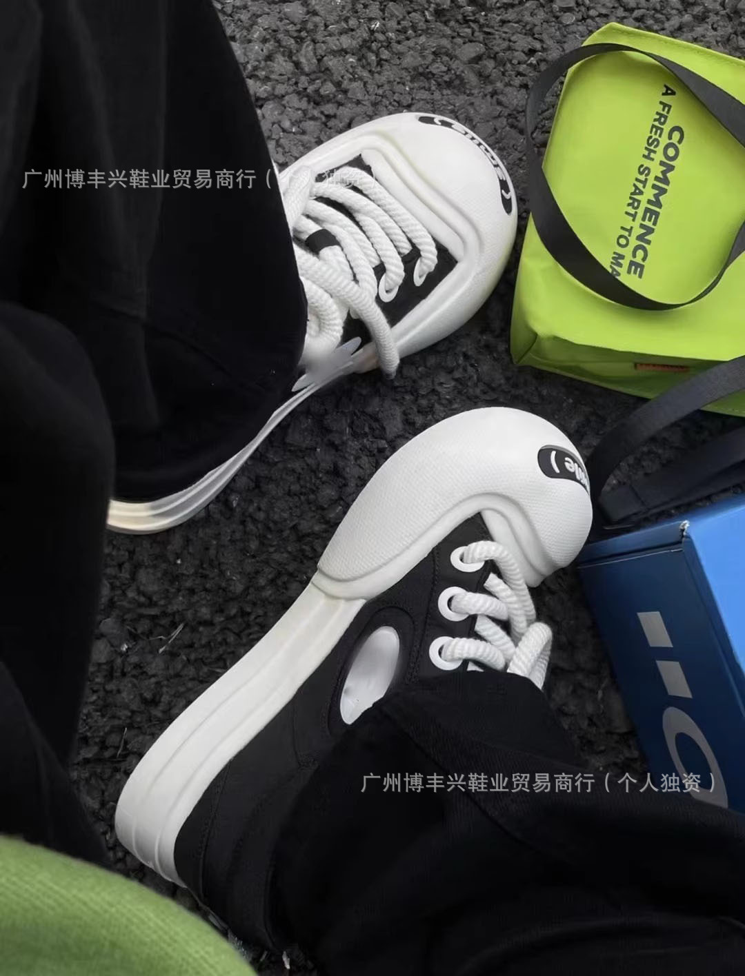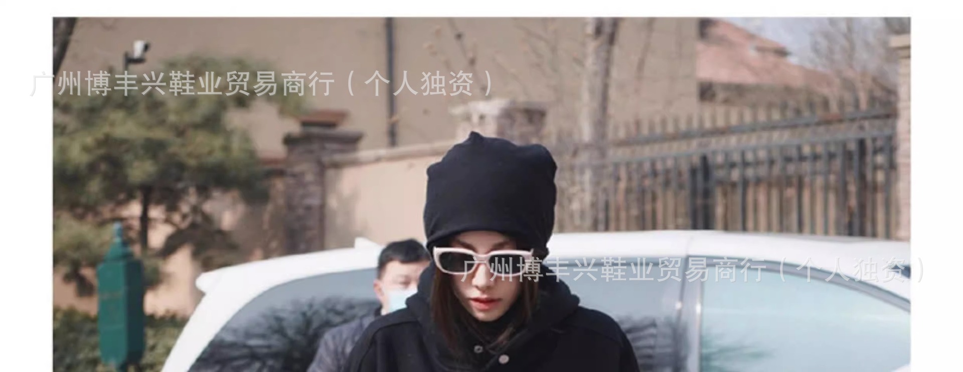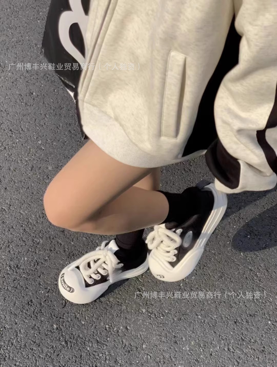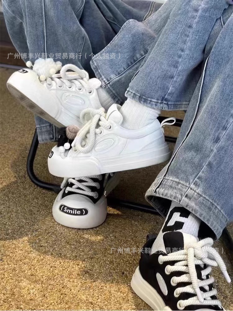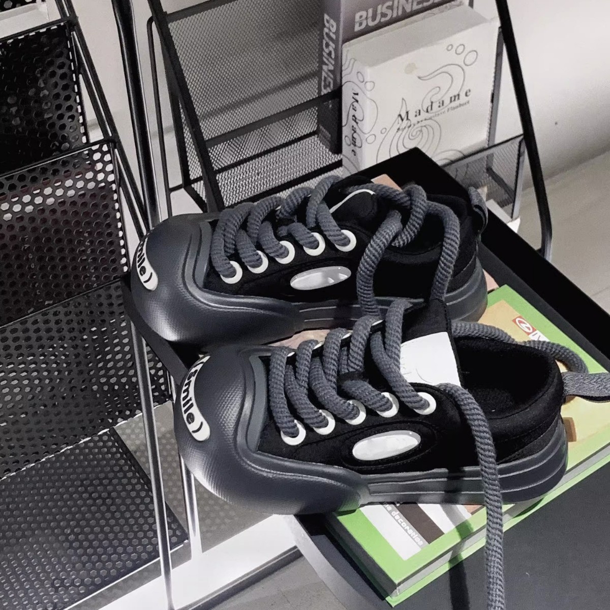 All black with pom poms