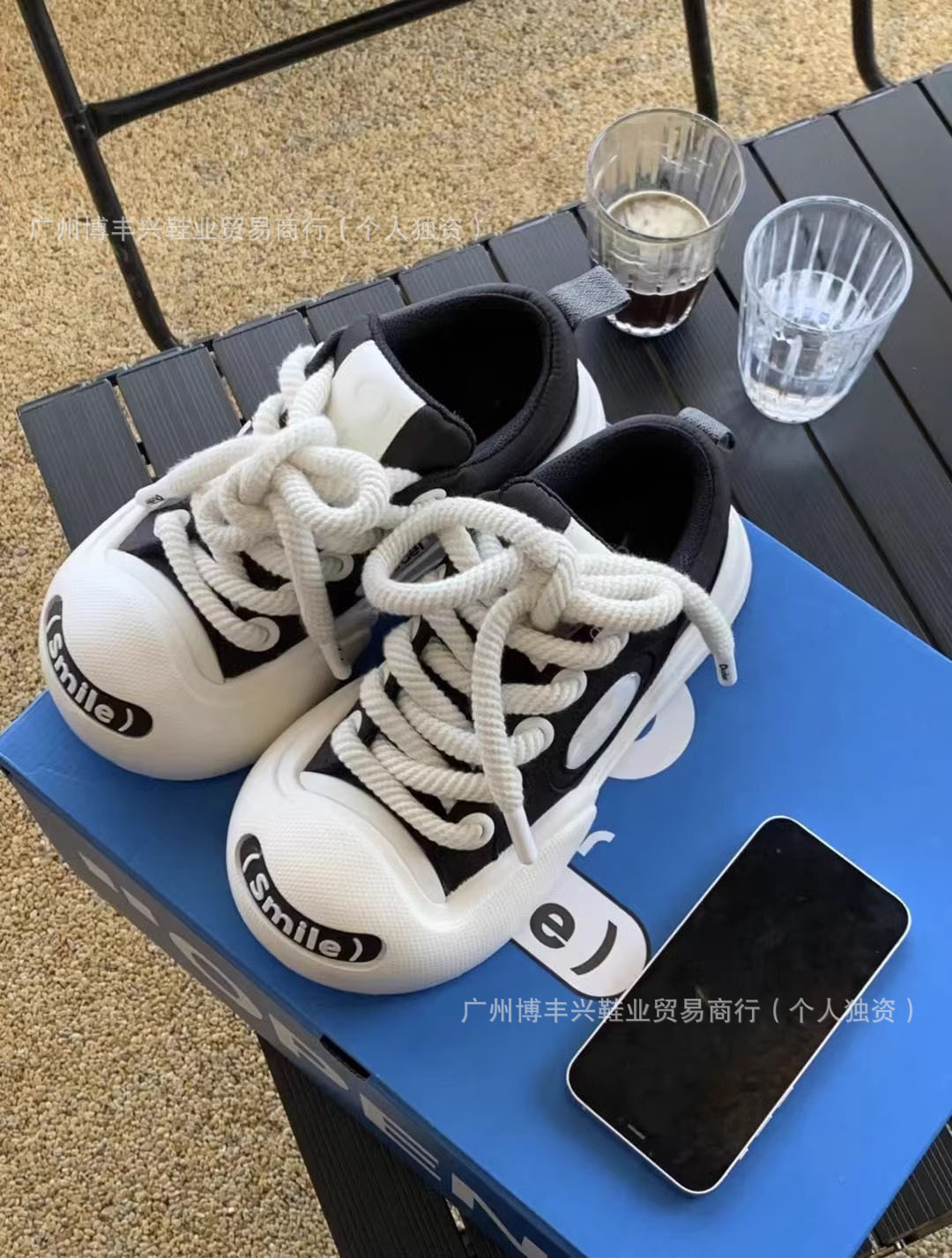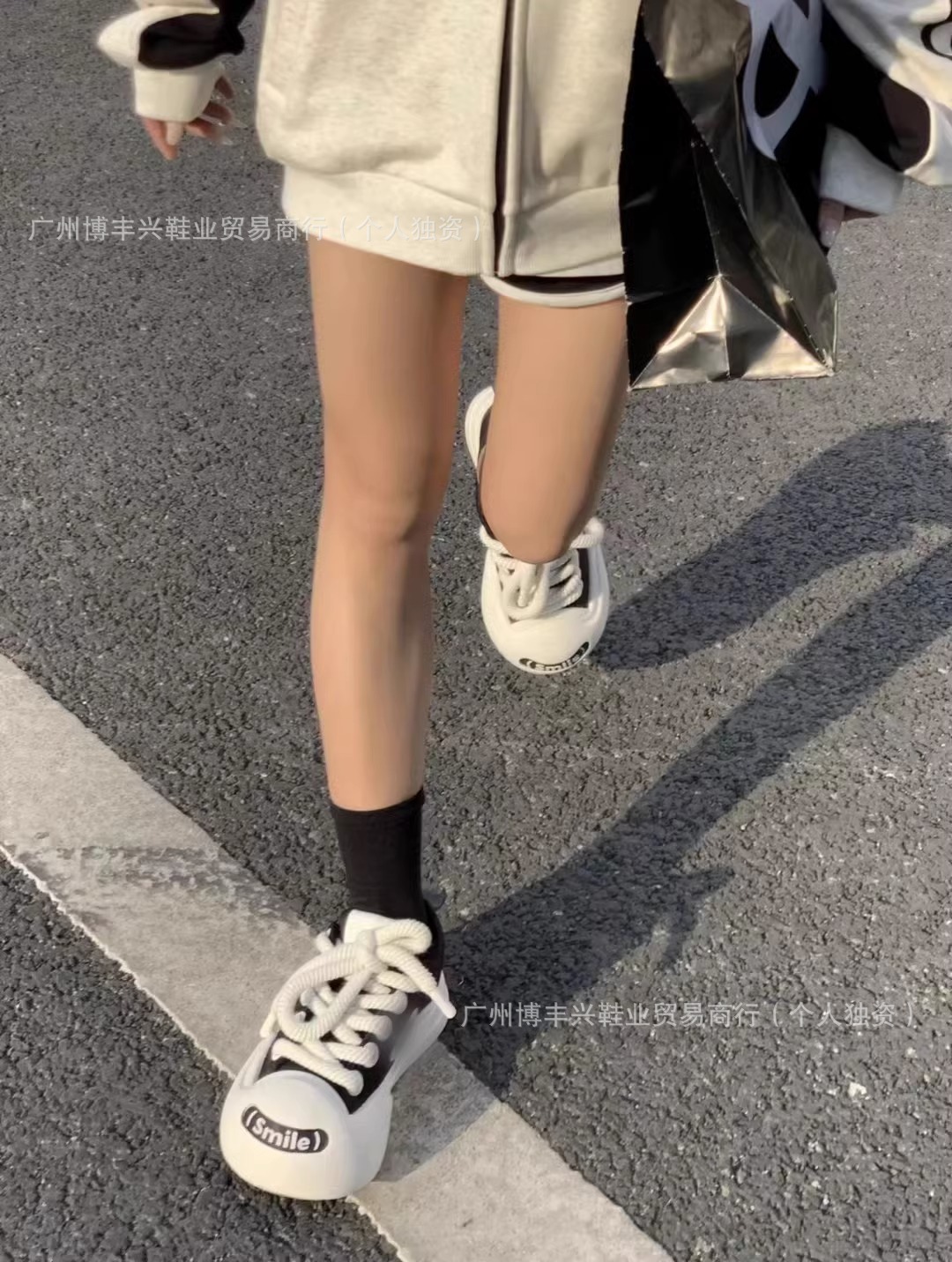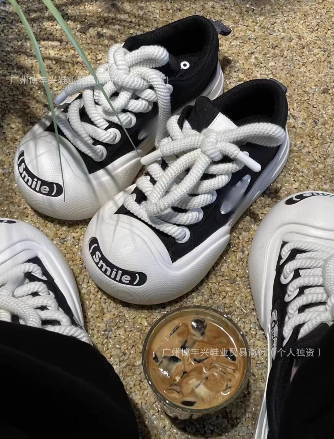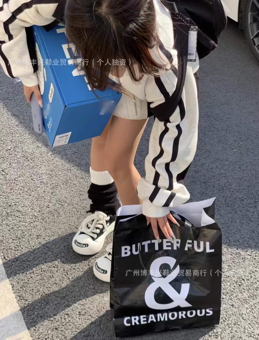 All black with pom poms