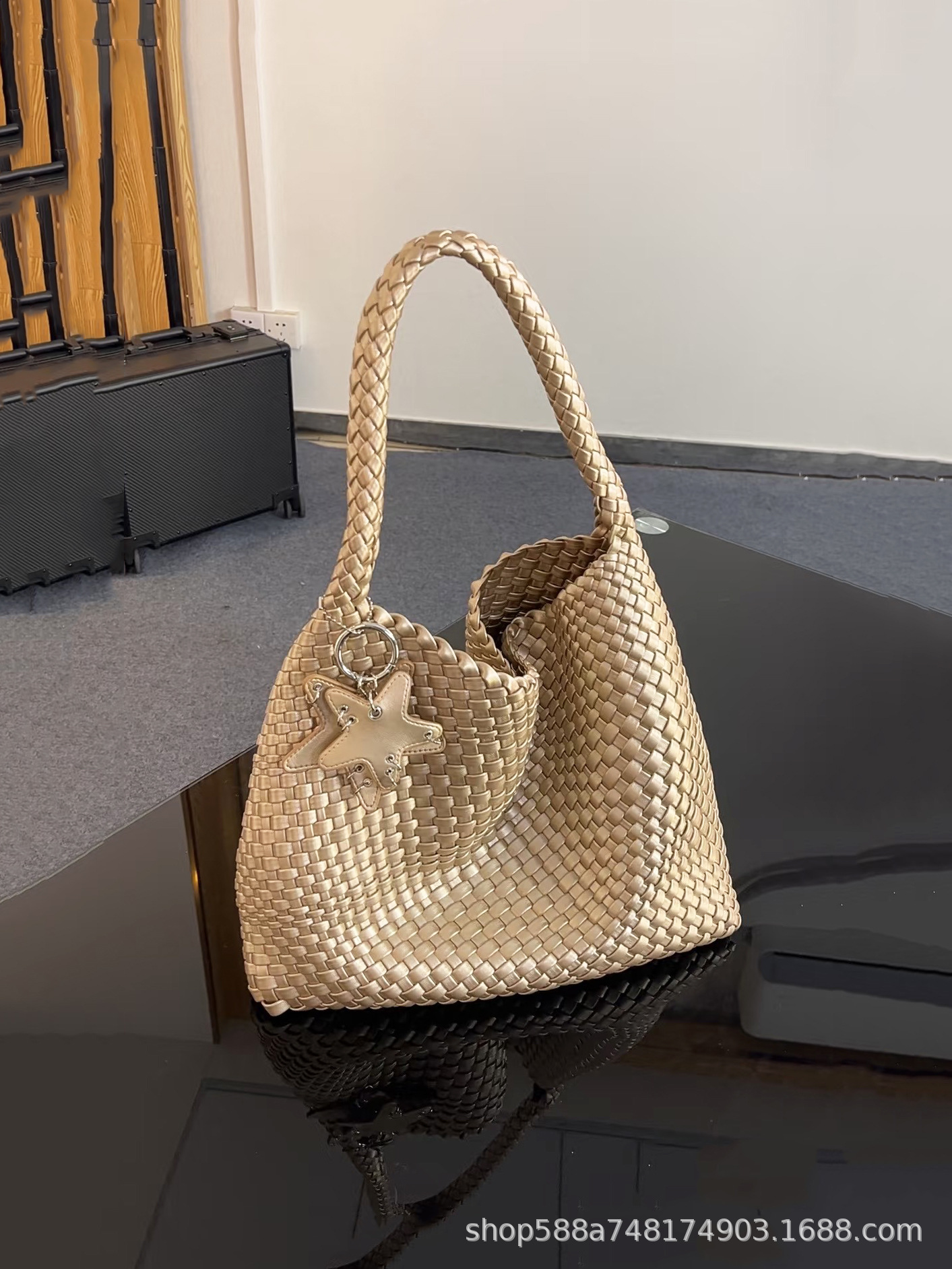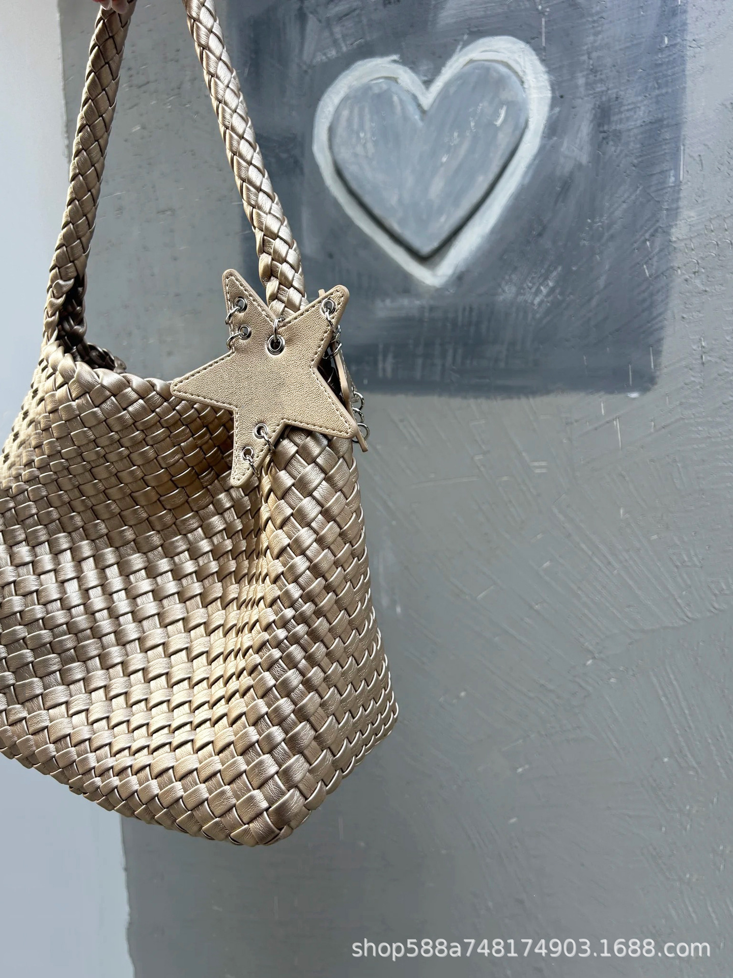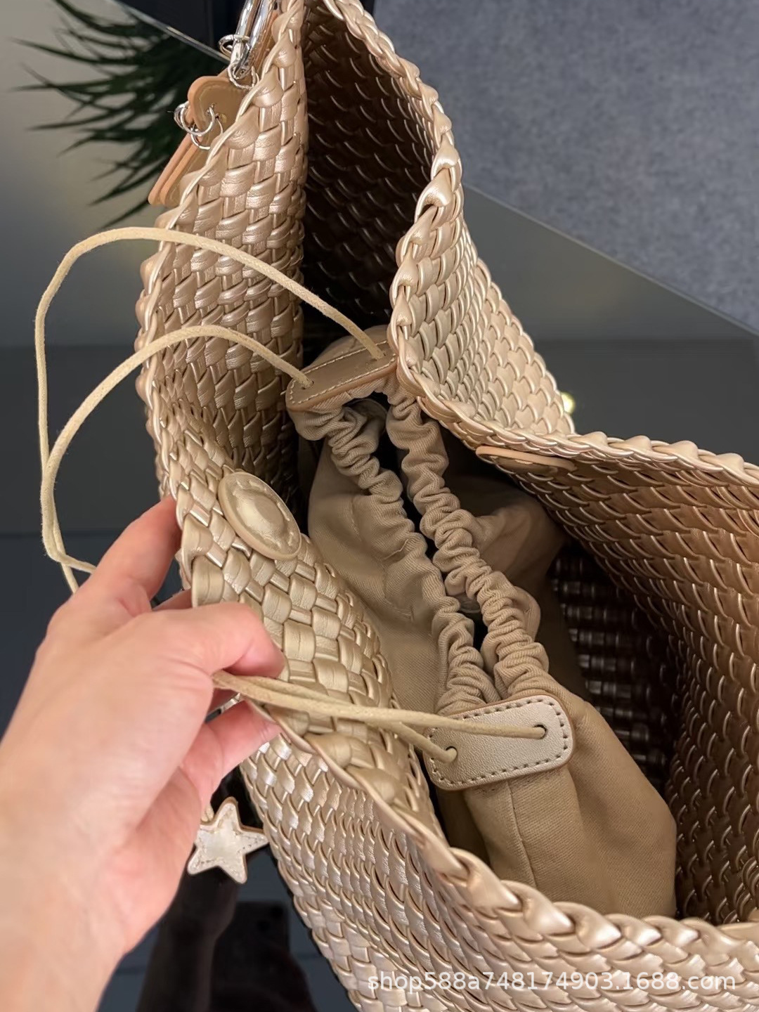 Large champagne color + five-pointed star pendant + inner bag, high quality