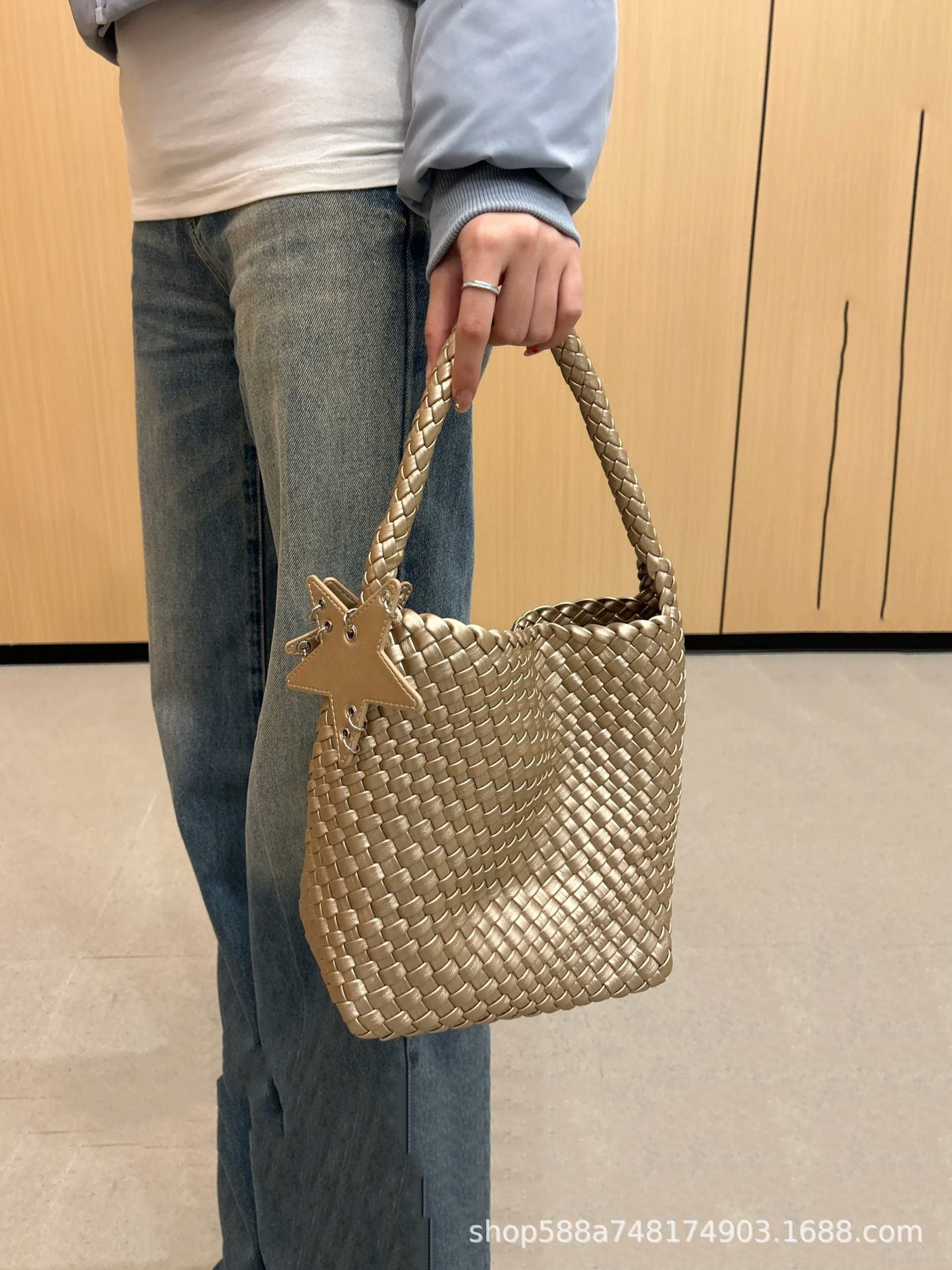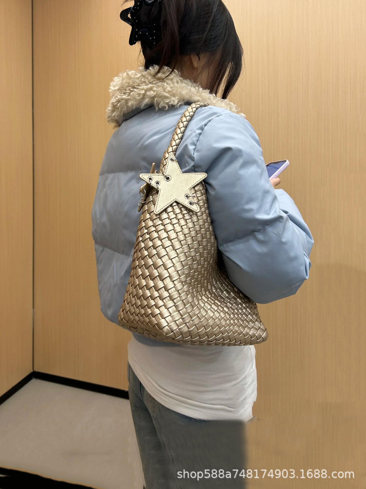 Medium champagne gold + five-pointed star pendant + inner bag high quality