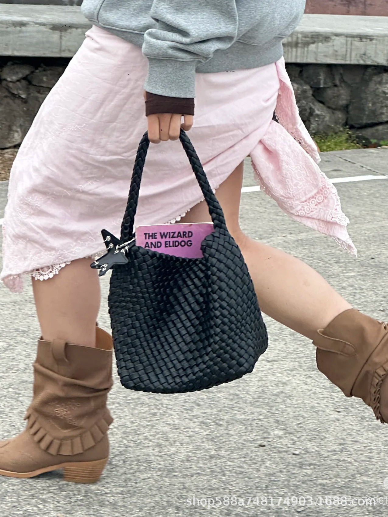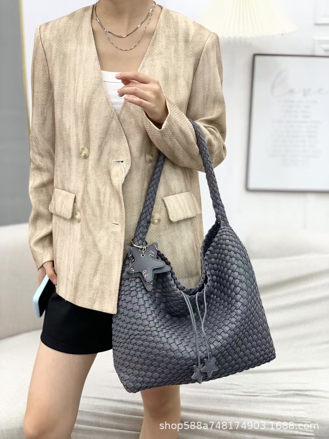 Large high-end gray + five-pointed star pendant + inner bag, high quality
