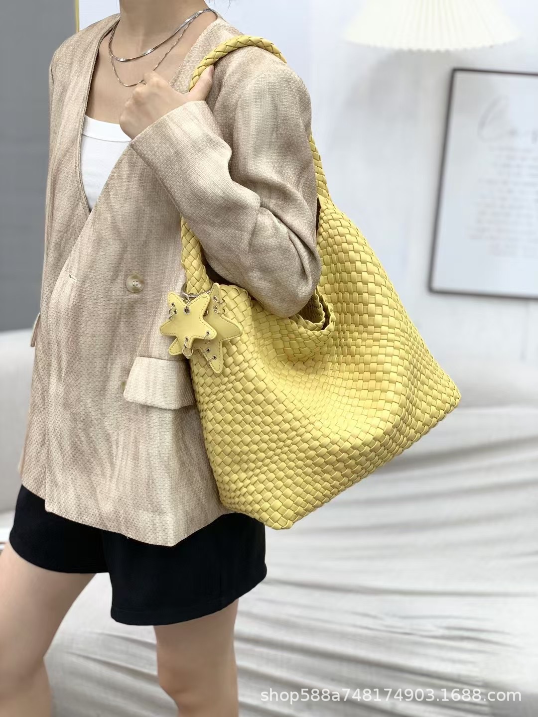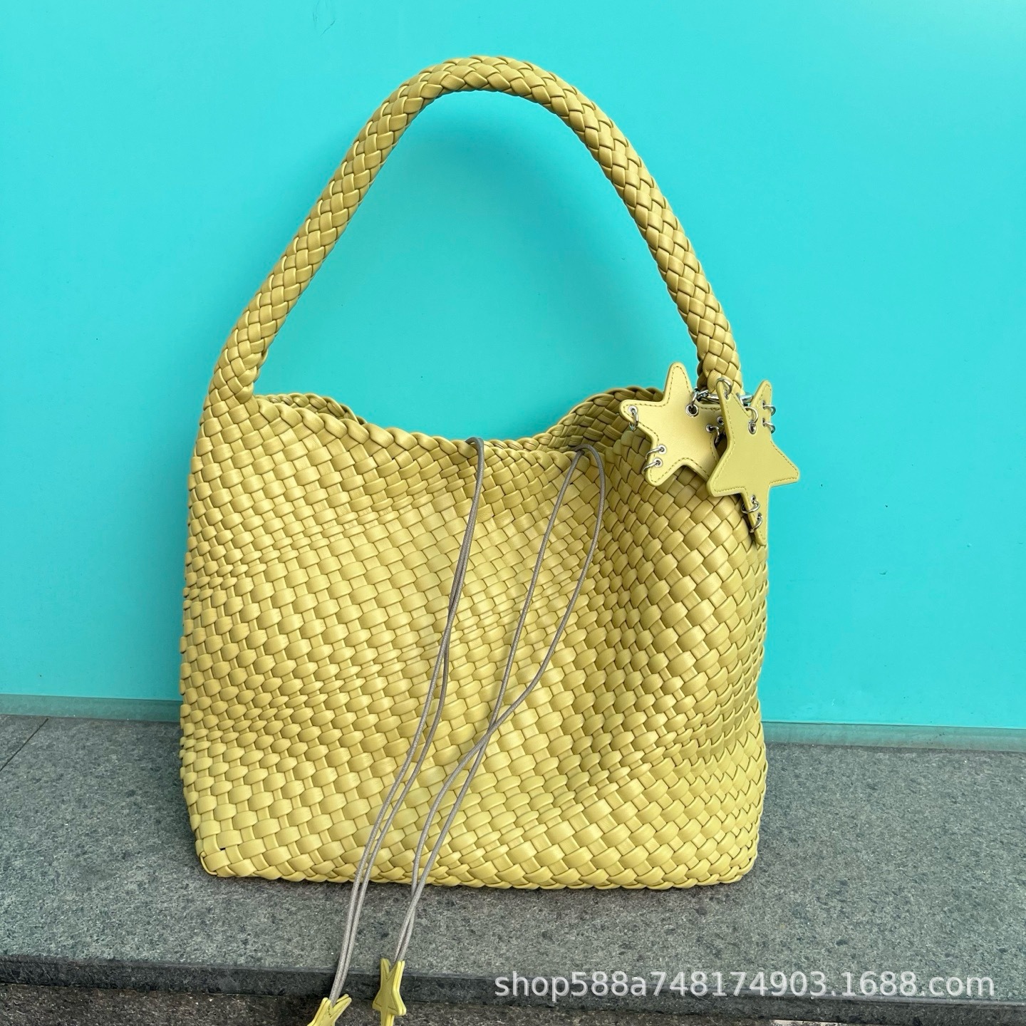 Large lemon yellow + five-pointed star pendant + inner bag, high quality