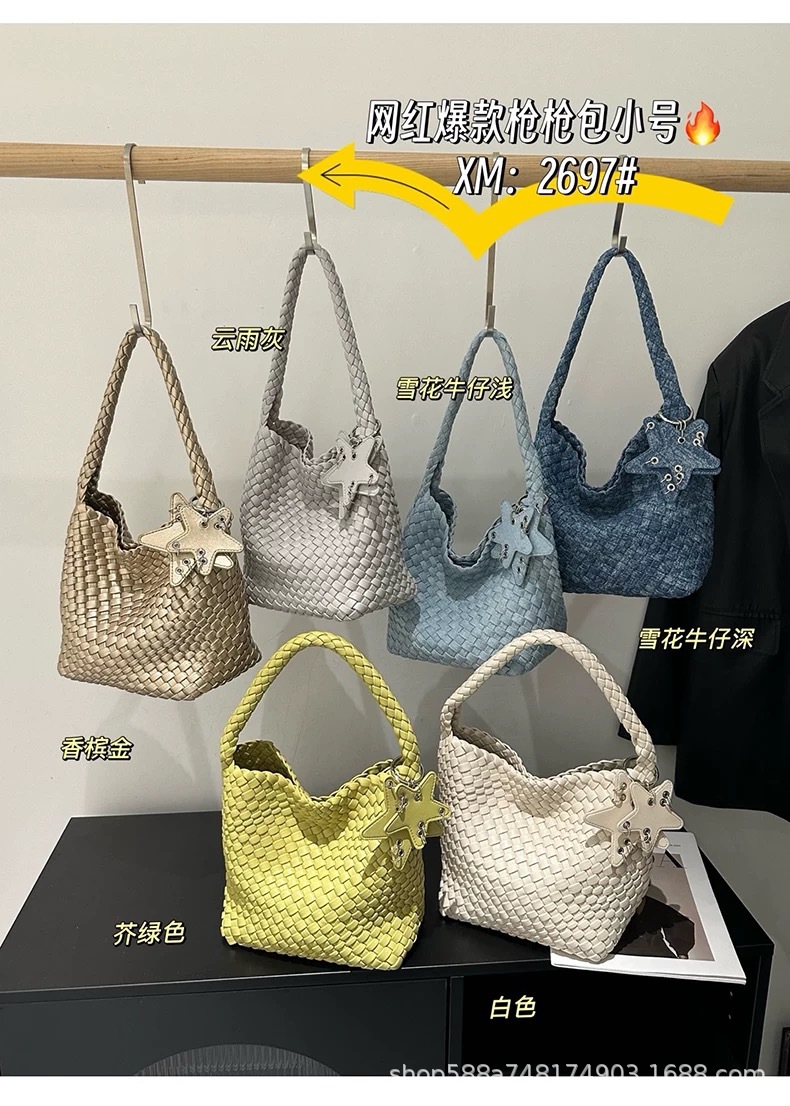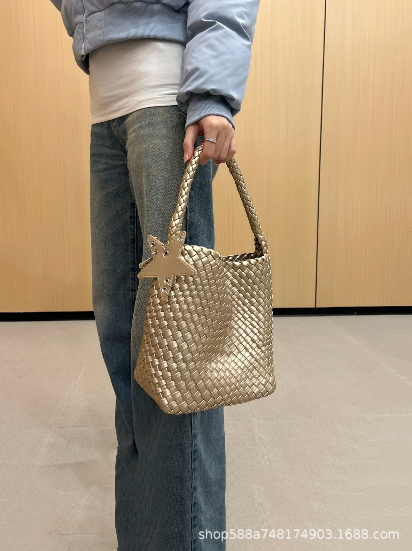 Small denim light blue + five-pointed star pendant + inner bag, high quality