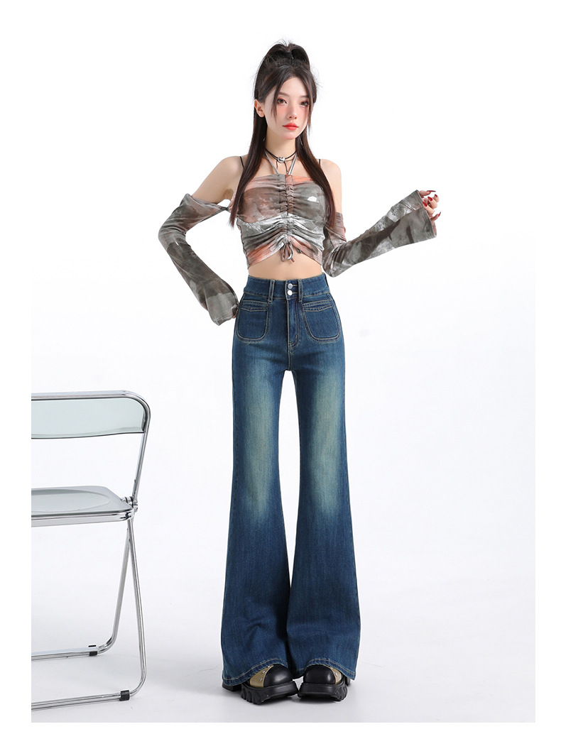 Nine-point retro blue (single pants)