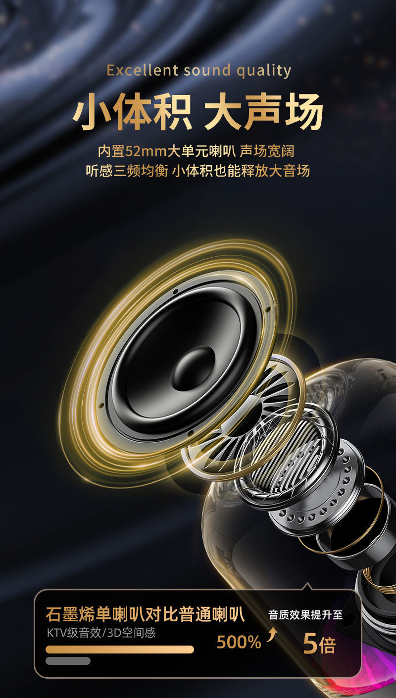 Black [inmerged non-destructive diaphragm + subwoofer + ambient light + surround sound]