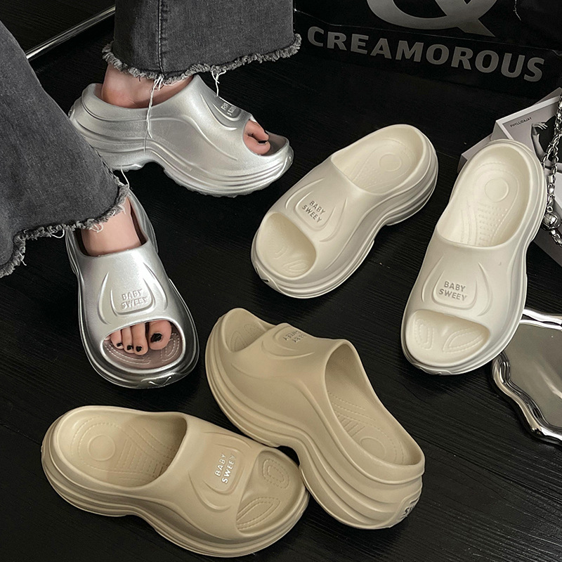 Thick-soled height-increasing slippers women's summer 2025 new home non-slip excrement sense eva beach sandals women's outer wear