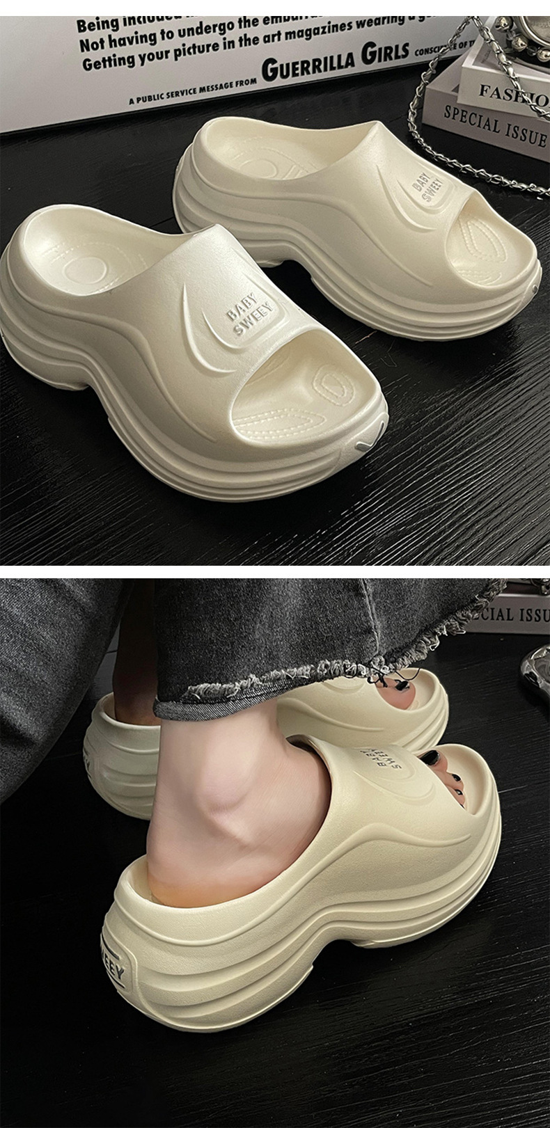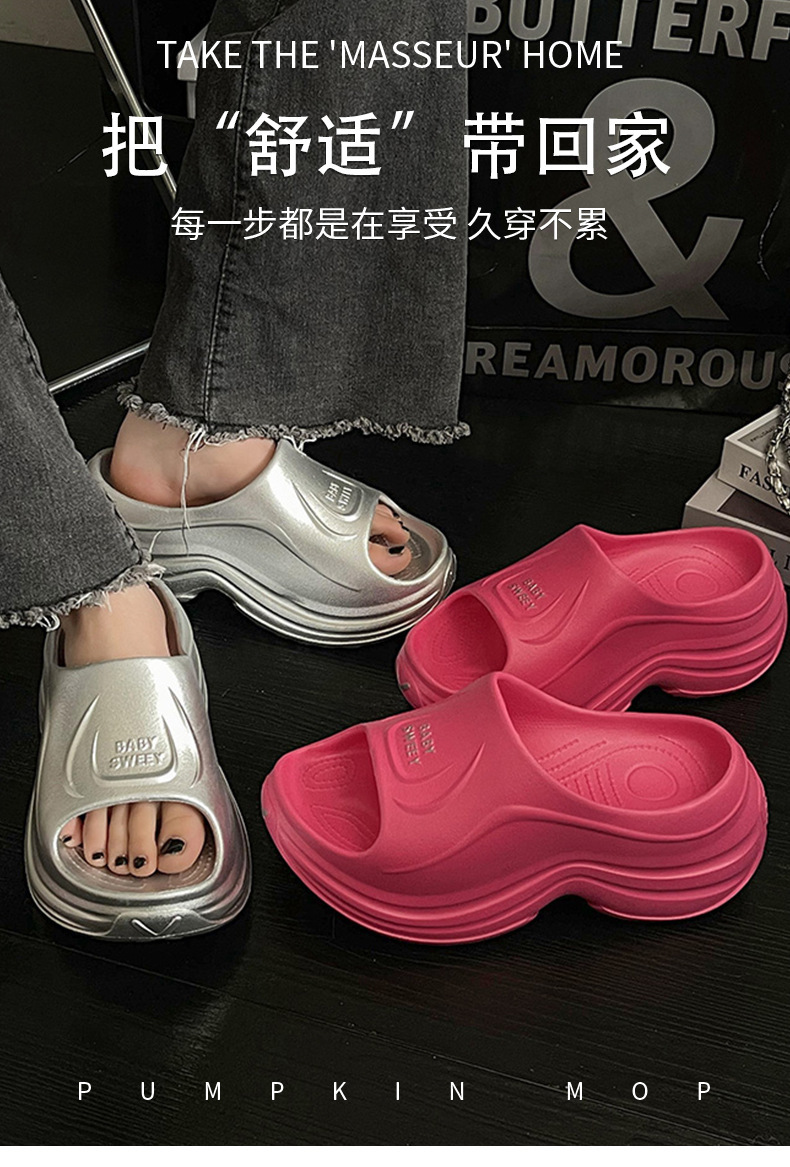 Thick-soled height-increasing slippers women's summer 2025 new home non-slip excrement sense eva beach sandals women's outer wear