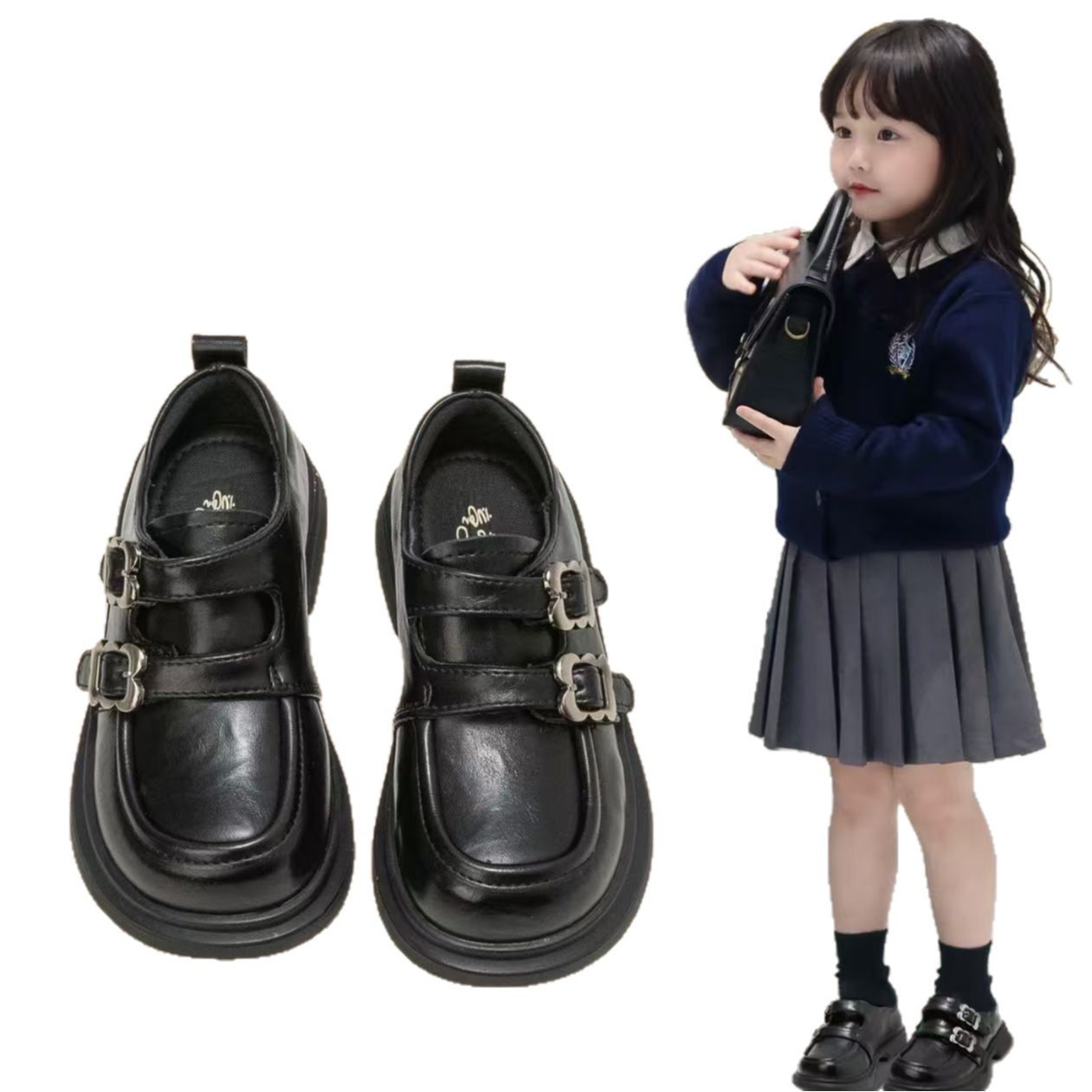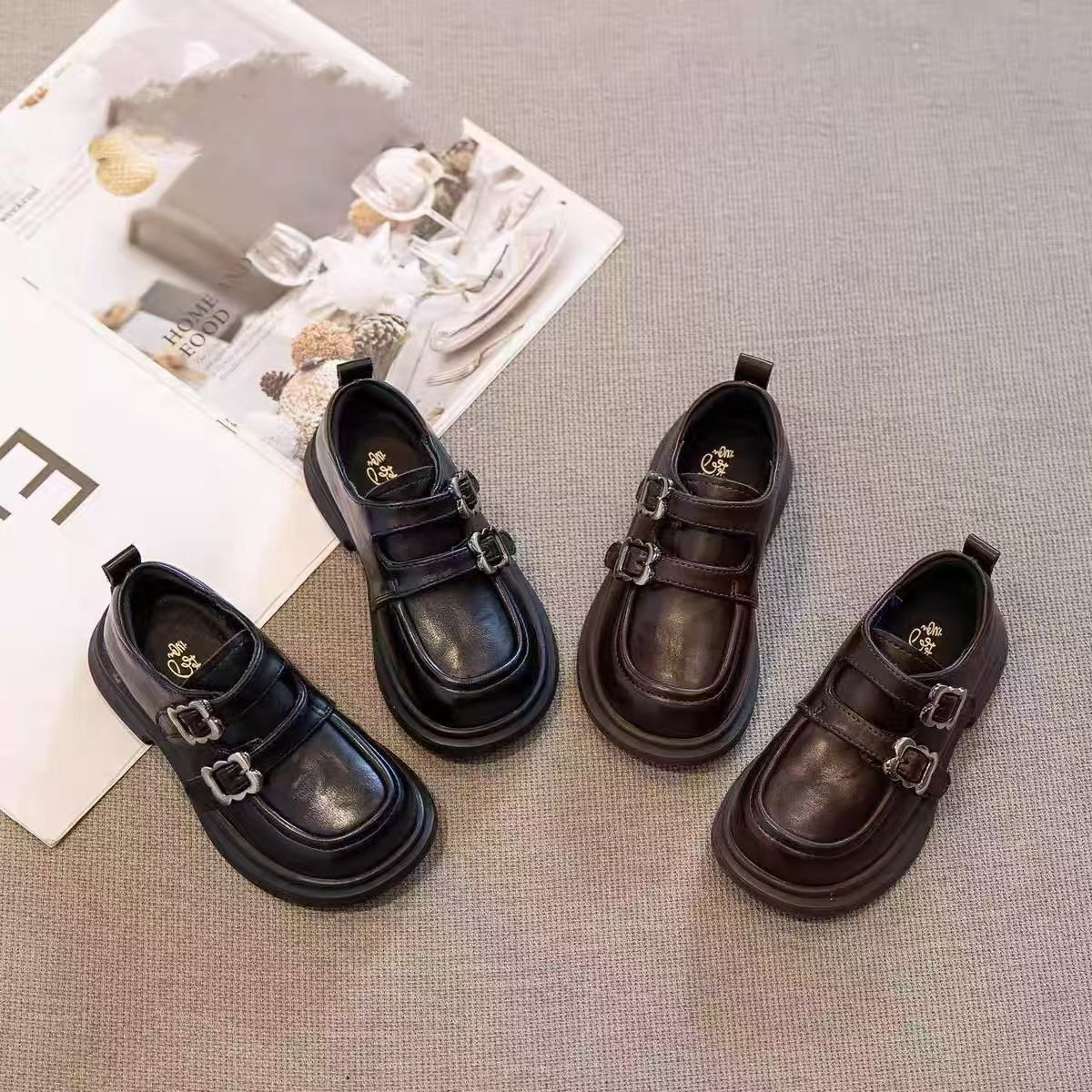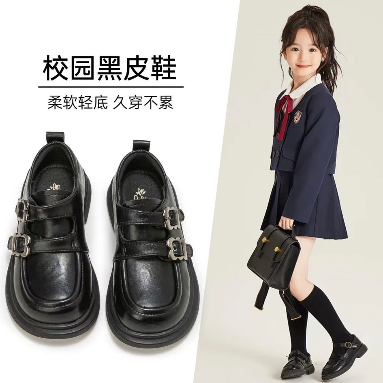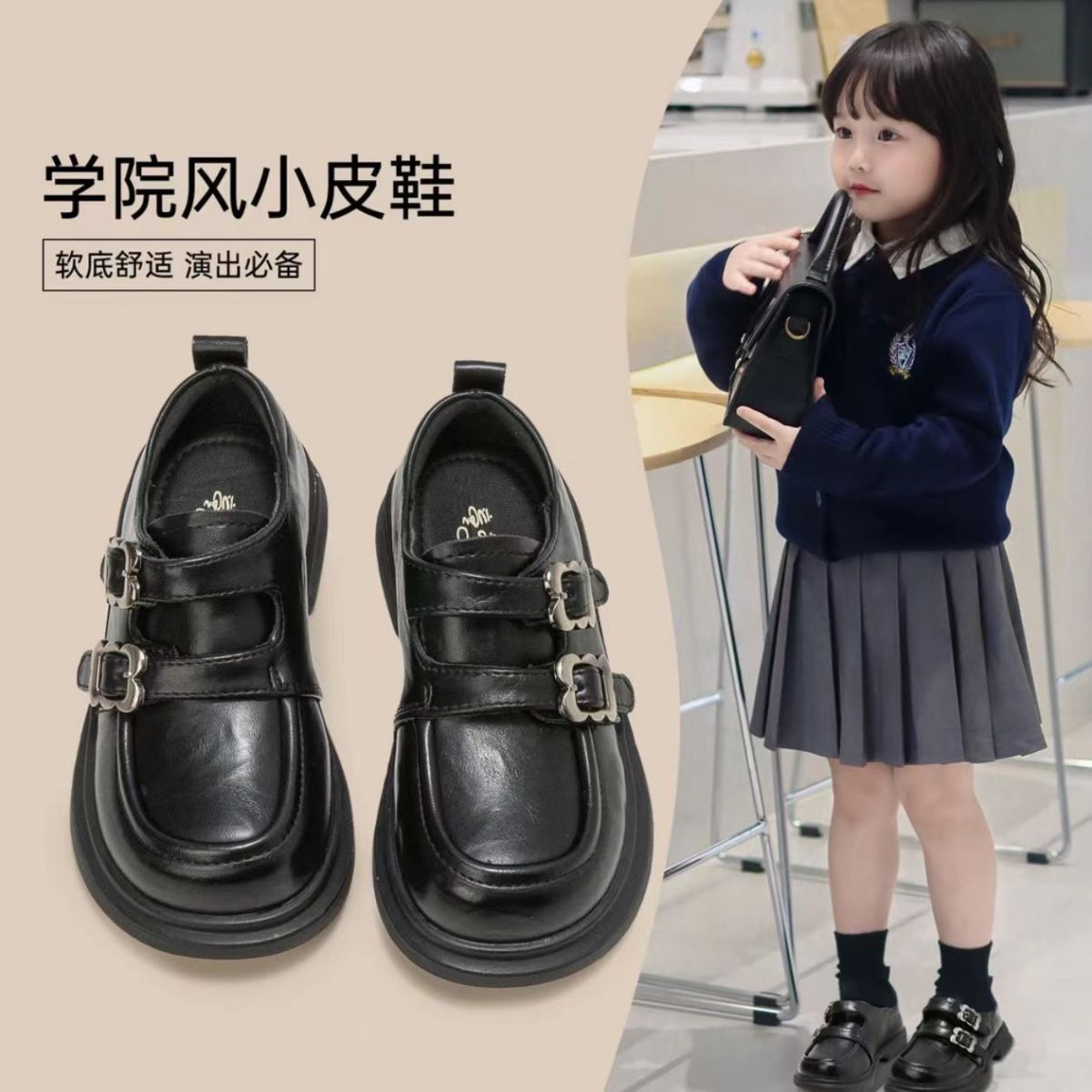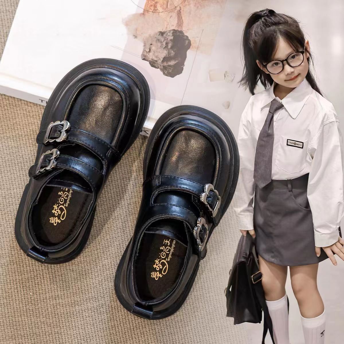 Girls Small Leather Shoes Spring Children's Princess Shoes Soft Sole College Style Black Loafers 2025 New Girls Shoes